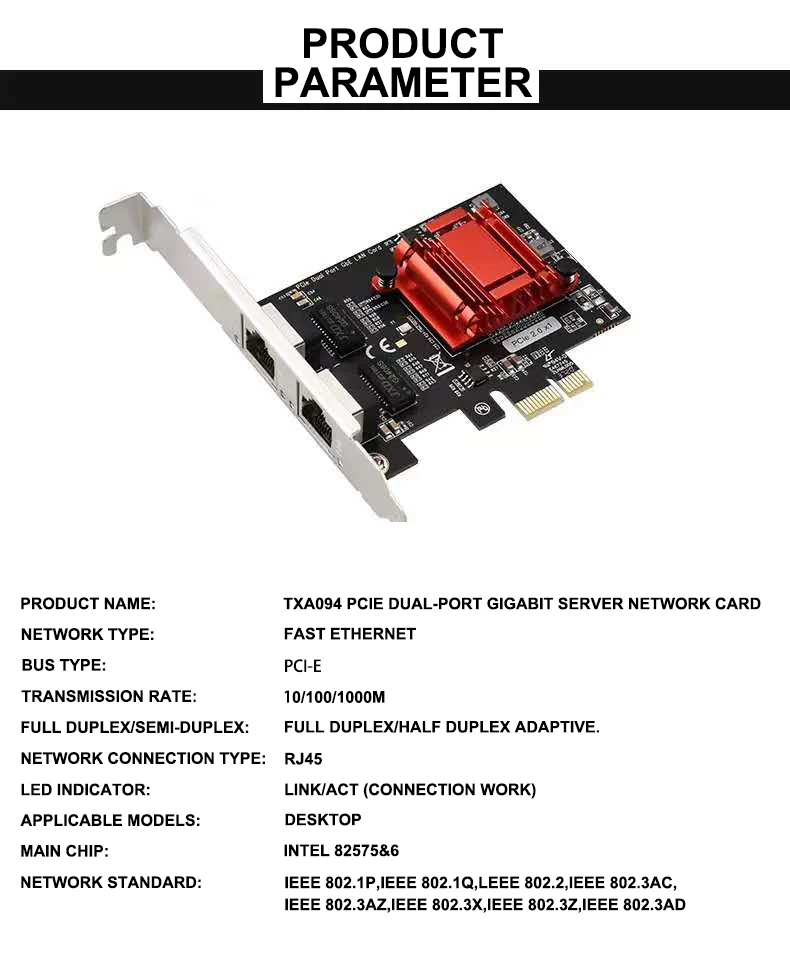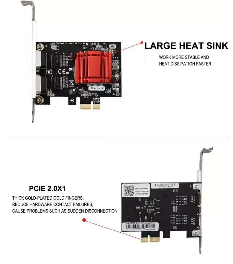 PCIe2.0 X1 Intel Chip intel82576 RJ45 servidor Gigabit de doble puerto tarjeta de red Software de escritorio enrutamiento adaptador de servidor enrutador 2 puertos