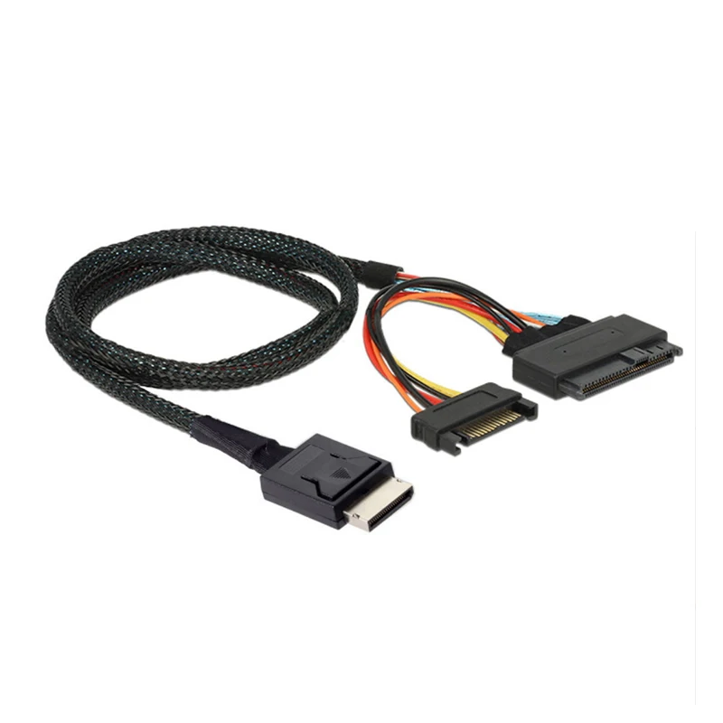 50CM 75CM PCIE4.0 a Oculink SFF-8611 4I U.2 SFF 8639 Adaptador GEN4 SAS Cable de alta velocidad con cable de servidor de energía SATA 15P