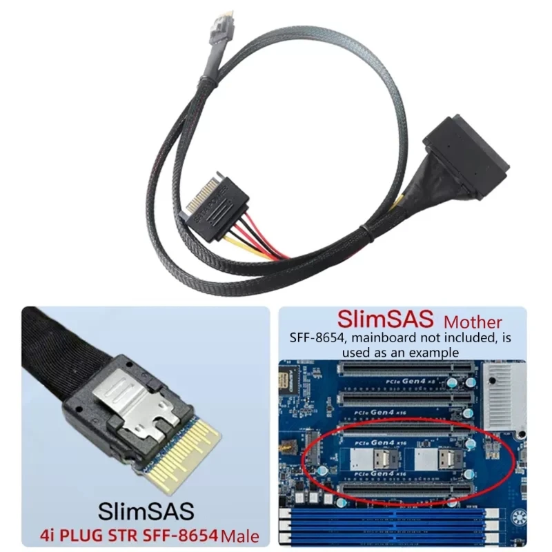Características:OOTDTYConector macho SlimSAS SFF8654 4i al puerto U.2 SFF-8639.
