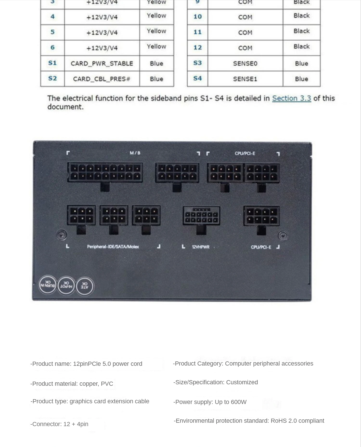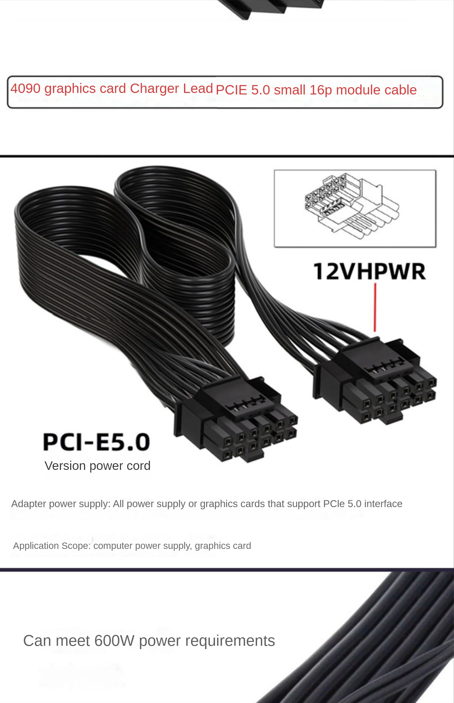 4090 Cargador de Tarjeta Gráfica Cable Pcie5.0 Pequeño Módulo 16P Cable 30cm 12vhpwr 12+4 Silicona 600W Línea Adaptada a RTX3090TI 40series
