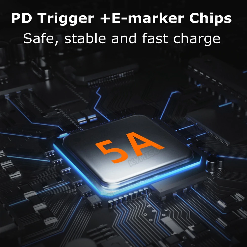 3. El cable de carga USB C a USB C PD requiere un chip E-marker incorporado; de lo contrario, no funcionará.