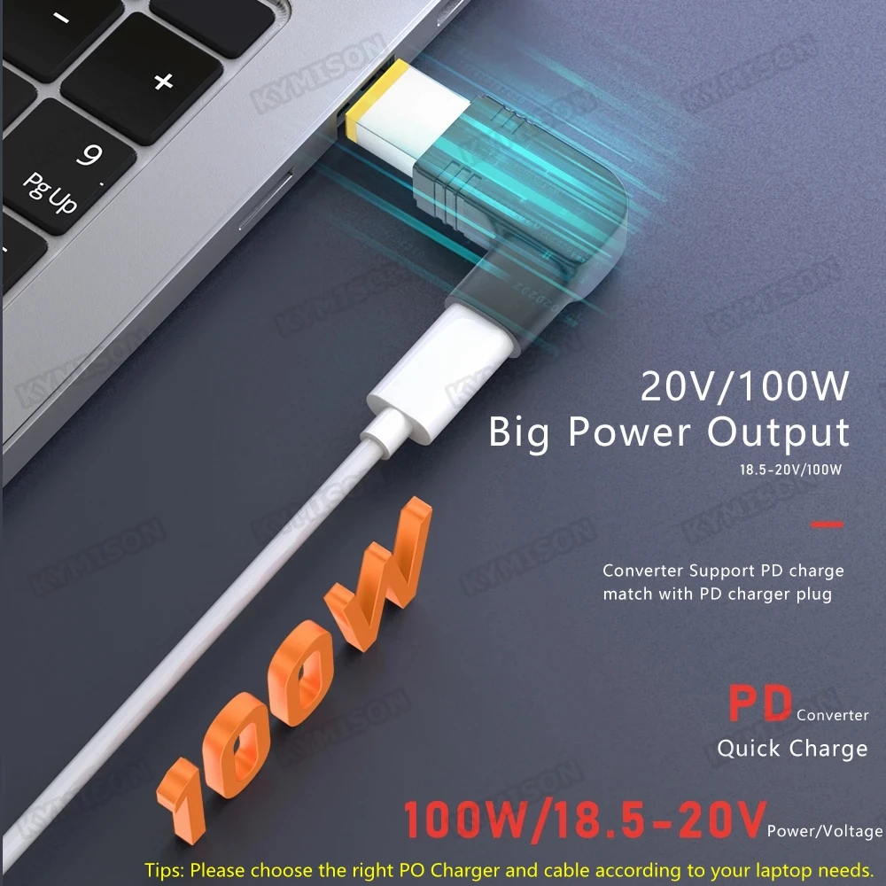 Convertidor de cargador para computadora portátil USB C hembra a CC de 100 W, perfecto para cargar su computadora portátil mediante el banco de energía o el cargador USB C PD.Dígale adiós al adaptador tradicional, ahorre más costos en el adaptador, viaje fácil con un diseño portátil liviano y compacto que puede deshacerse de los cargadores pesados/ladrillos eléctricos, llévelo en su mochila incluso en el bolsillo de la camisa.