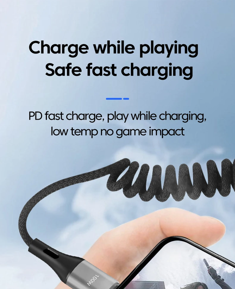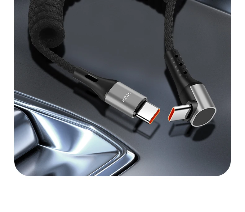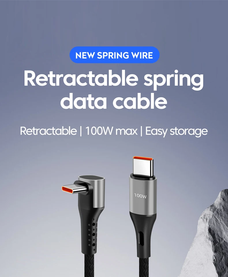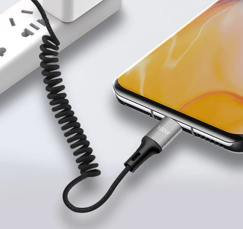 PD 100W tipo C a USB C Cable de carga rápida Cable de resorte de coche para iPhone 15 16 Samsung Xiaomi Huawei iPad 66W Cable USB tipo C