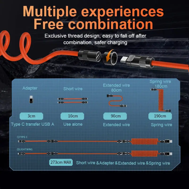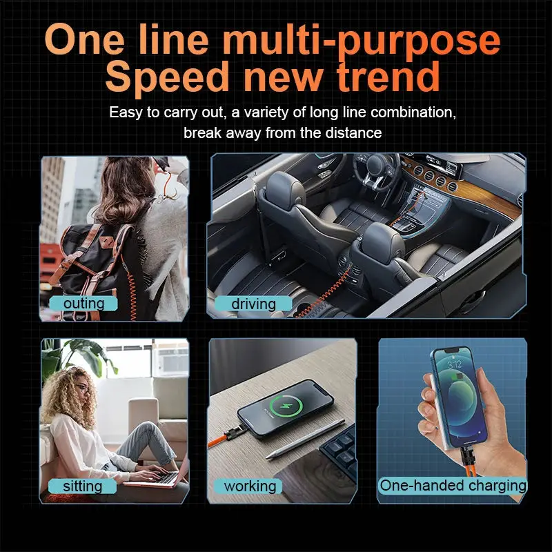 Comprar PD 120W empalme Cable de datos de carga rápida USB C a USB C Cable en espiral de resorte de expansión tipo C Cable de carga escalable para Iphone