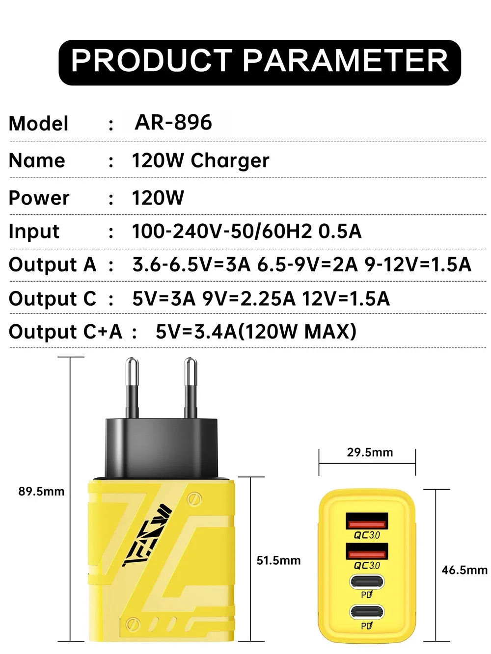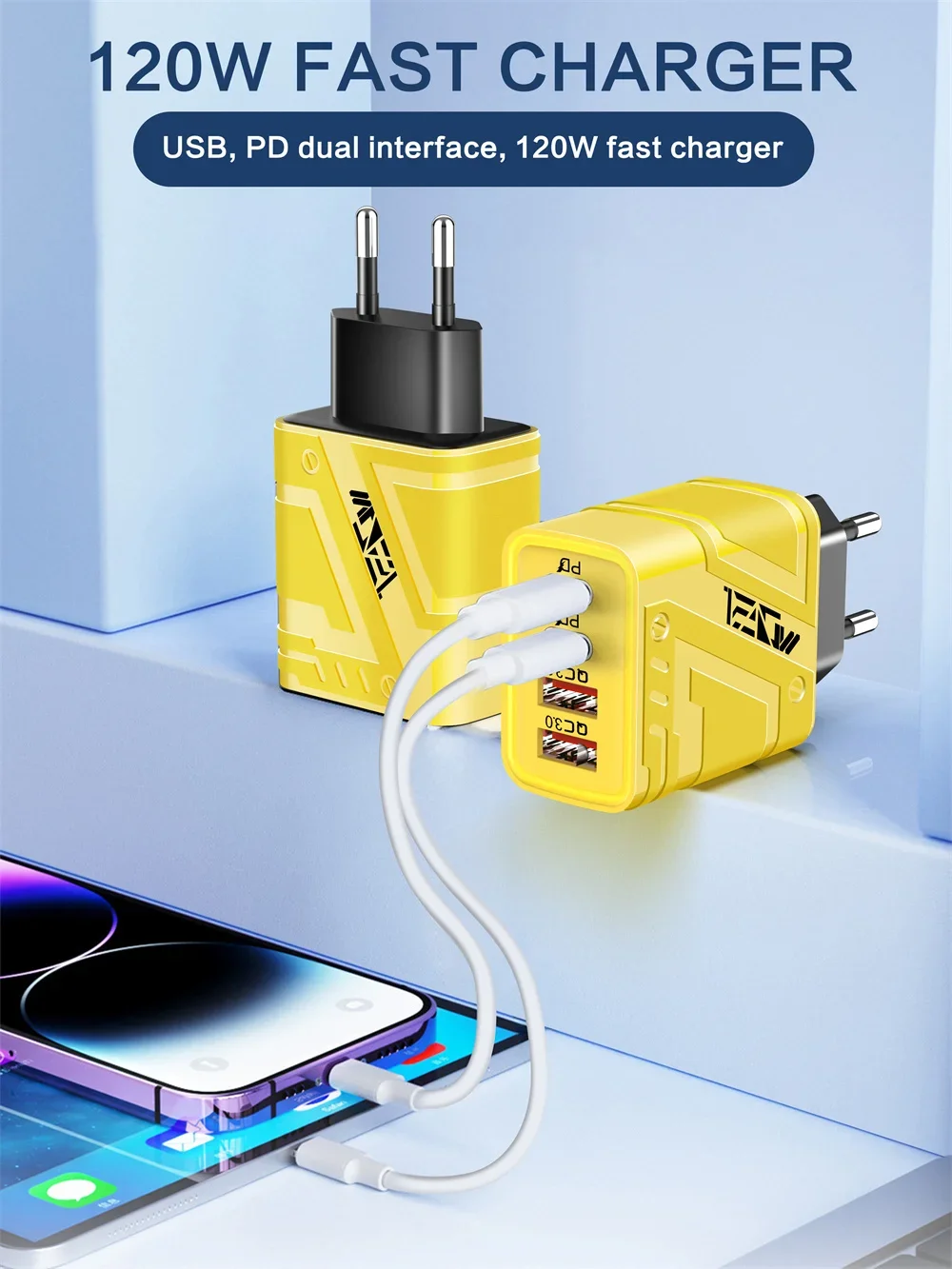 PD 120W QC 3.0 cargador rápido USB tipo C carga rápida adaptador de pared para teléfono móvil UE/EE. UU. para IPhone 15 Max Huawei Xiaomi Samsung