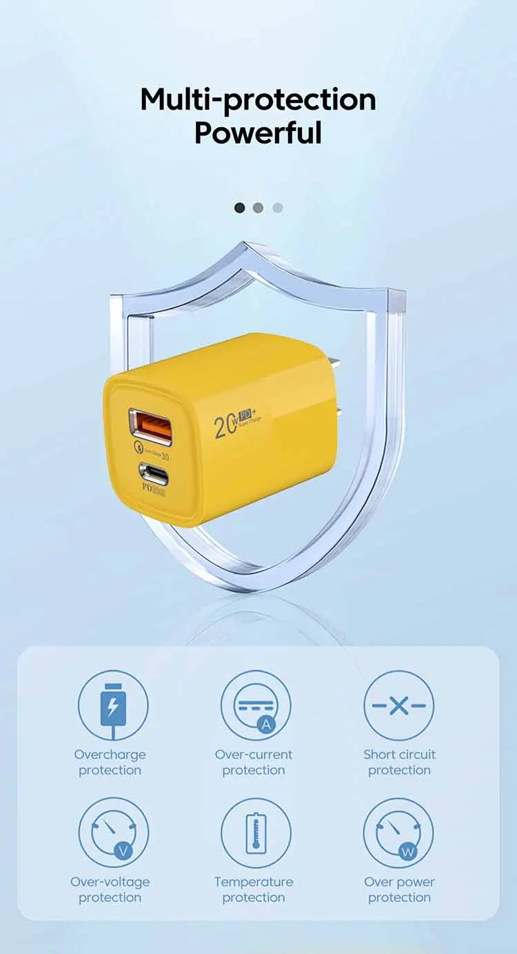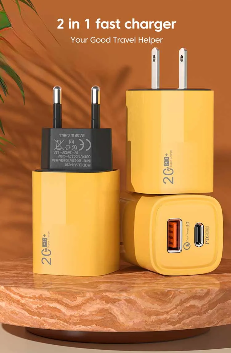 Comprar PD 20W USB tipo C cargador puertos duales tipo C USB cargador de carga rápida para iPhone 15 Pro Samsung Xiaomi USB C a C Cable de carga