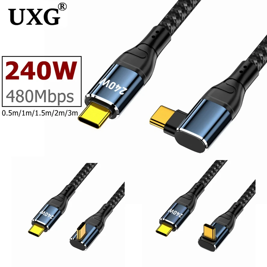 PD 240W USB tipo C a USB C Cable ángulo de 90 grados para iPad MacBook Pro Xiaomi Samsung Huawei carga rápida tipo C Cable de datos 1/3M