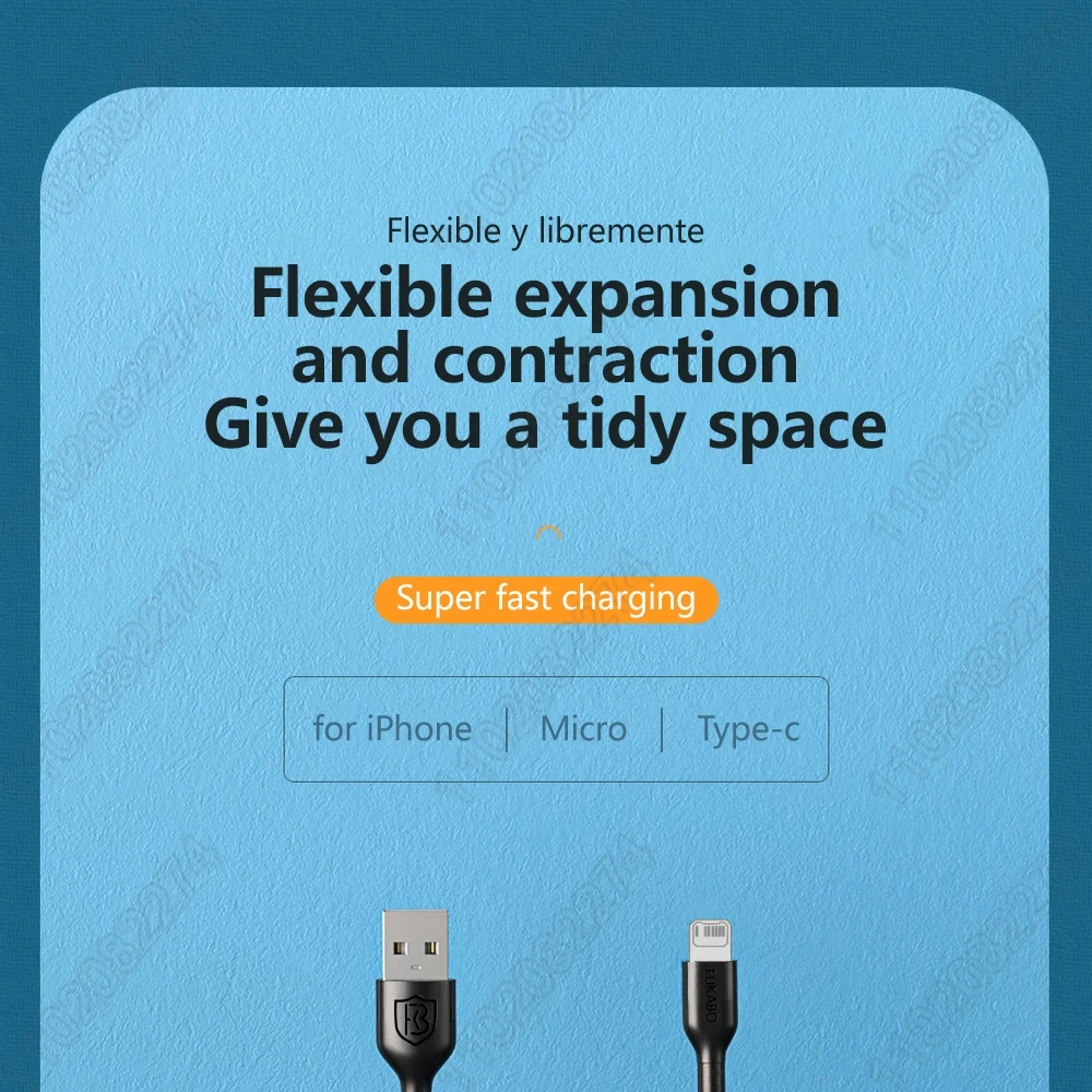 PD 27W Coche USB Primavera Stretch Cable Para el iphone 13 12 11 14 Pro Max Teléfono Cargador de Carga Rápida Cable X XR XS 7 8 Plus Cable de Datos