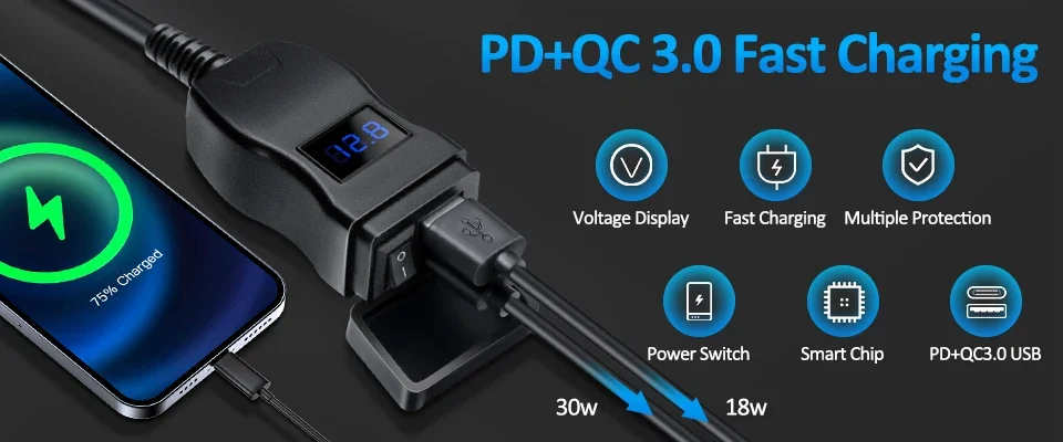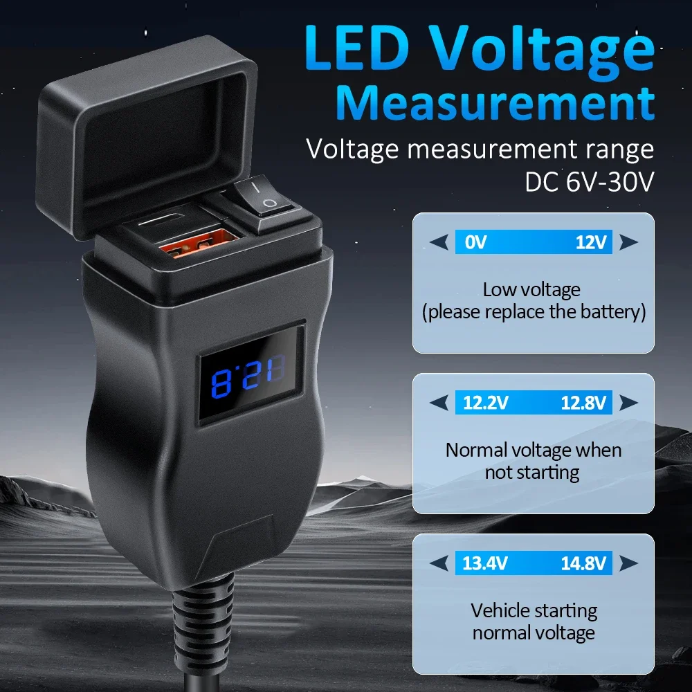 Diseño de interruptor de encendido/apagado: este cargador USB para motocicleta viene con un interruptor de encendido/apagado.