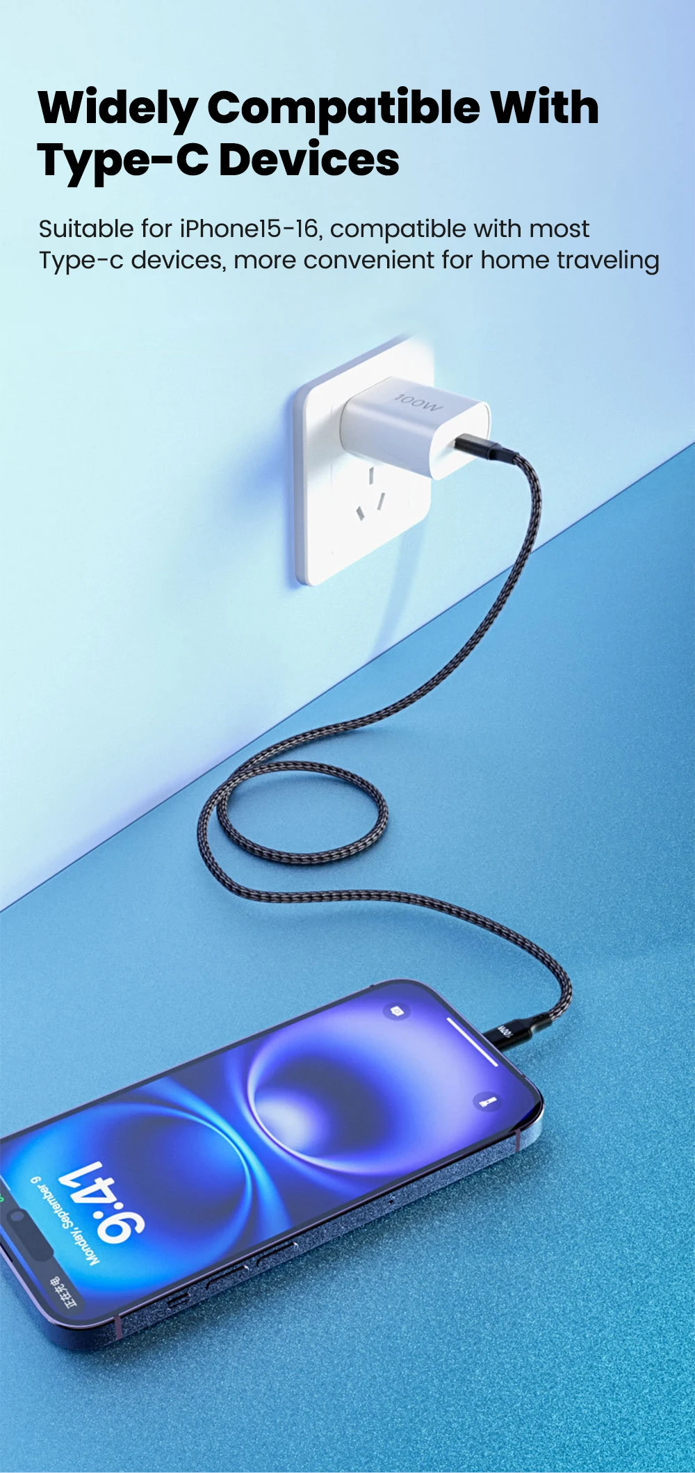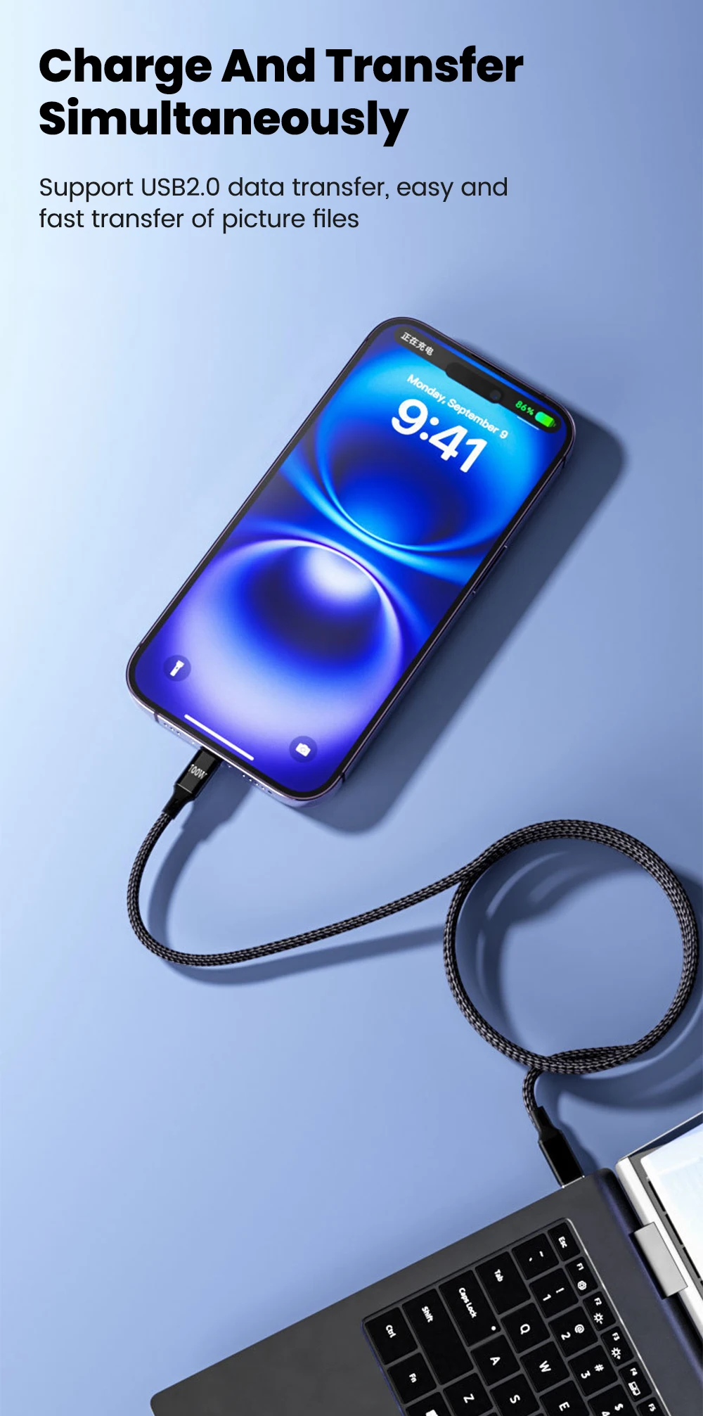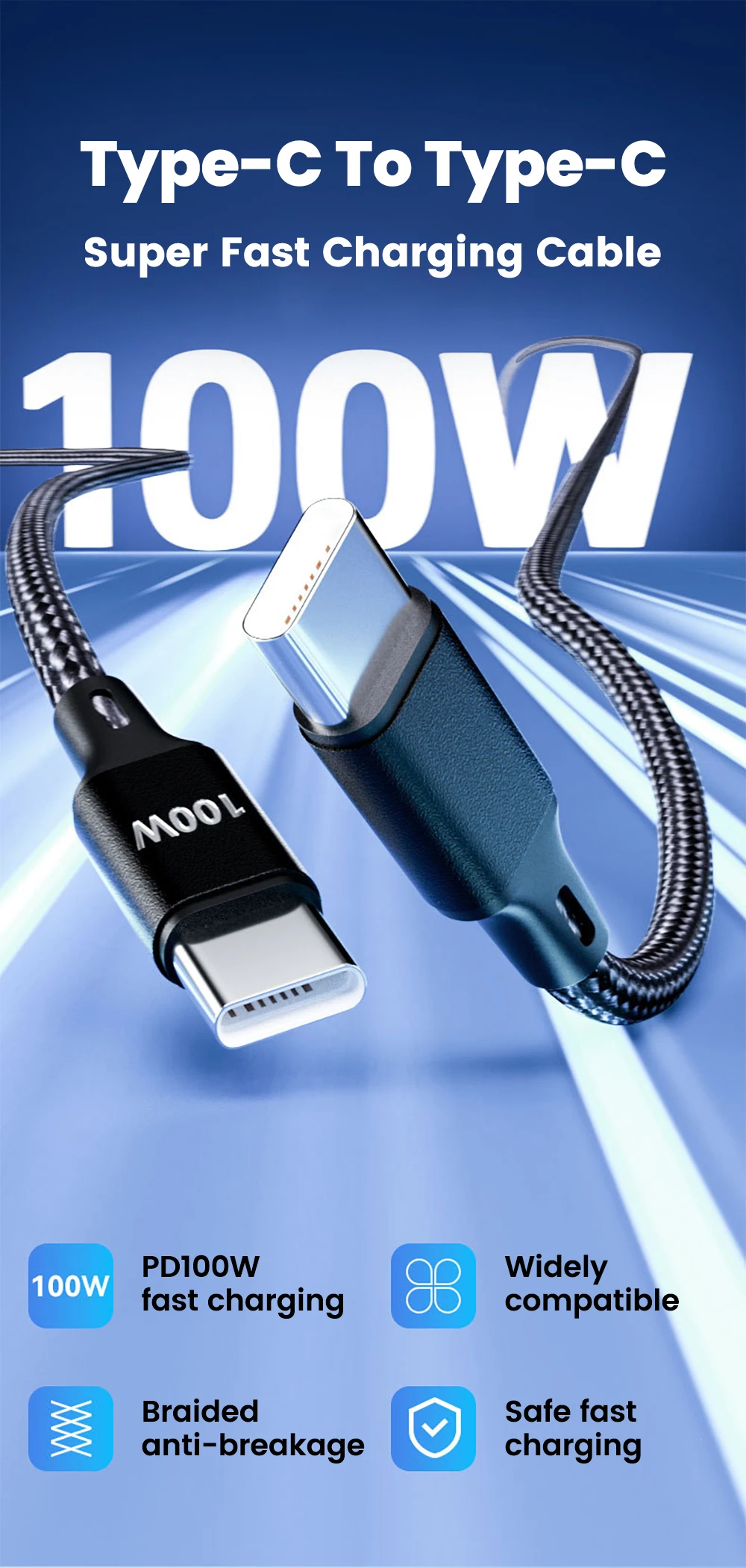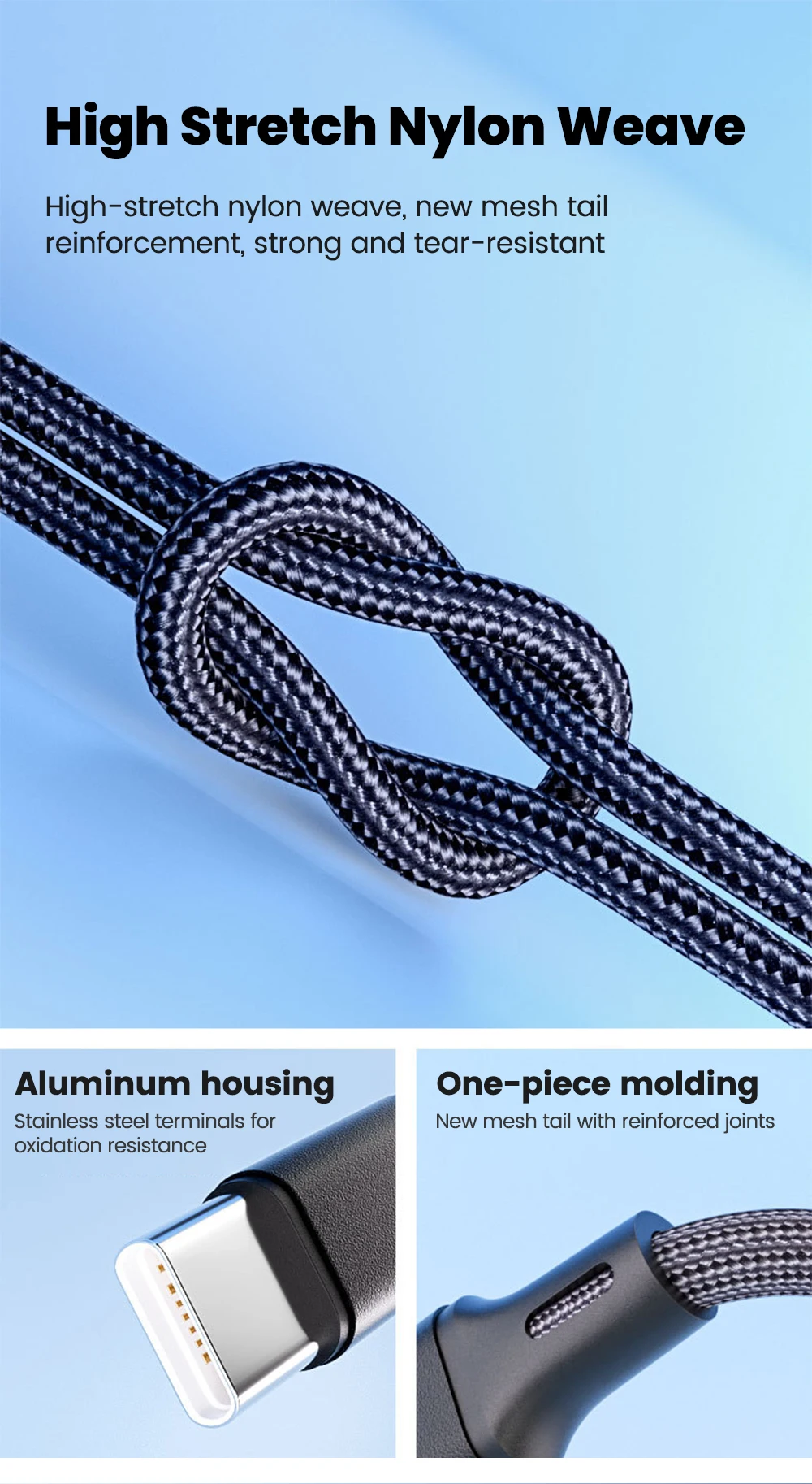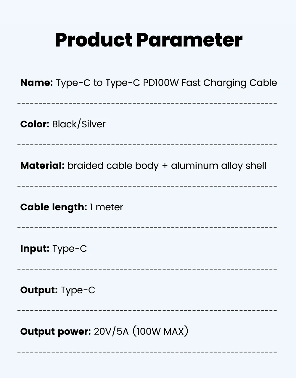 Nombre: Cable de carga rápida trenzado de aleación de aluminio PD100W C a C