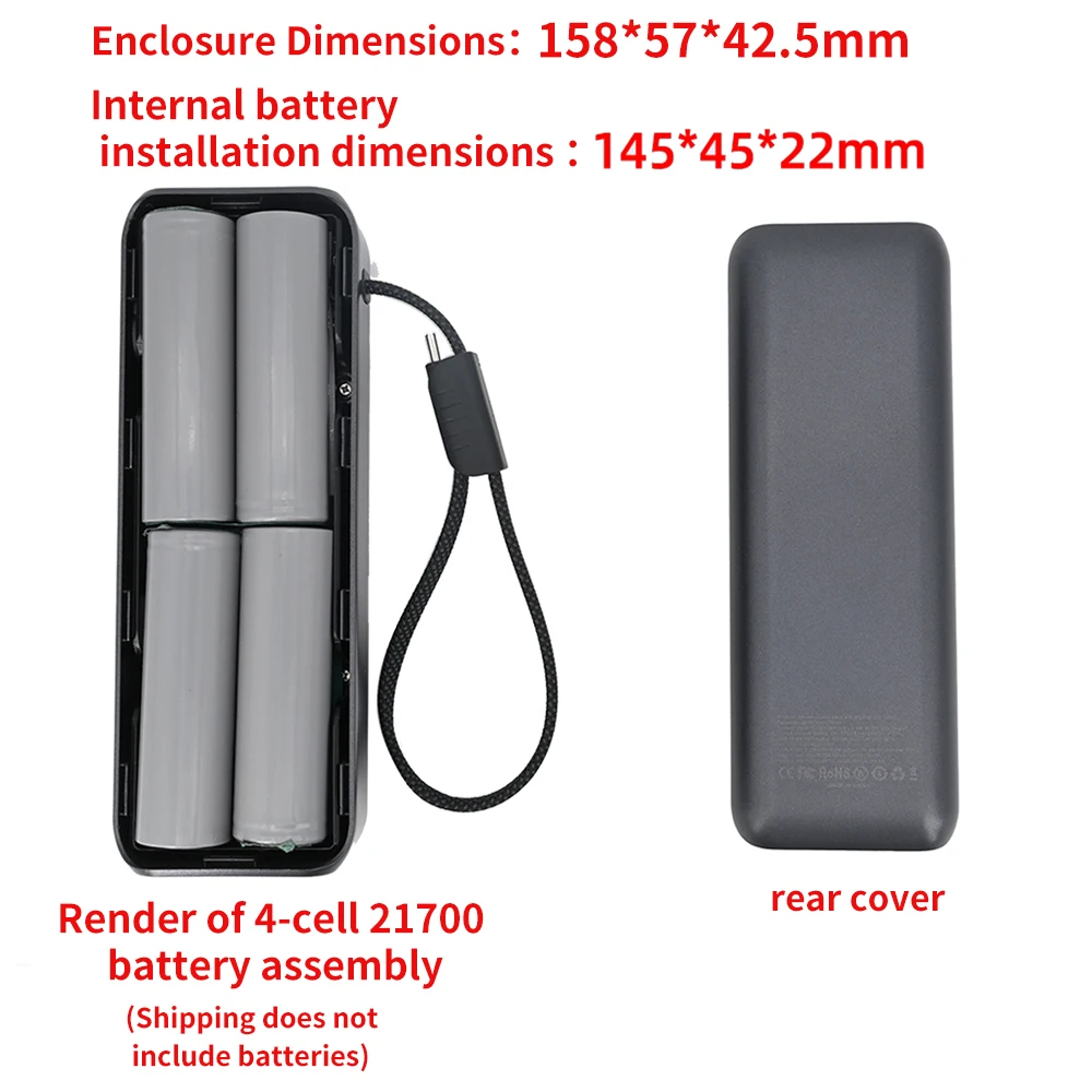 Compatibilidad de la batería: Tiene capacidad para 4 baterías *21700 (requiere soldadura; baterías no incluidas)