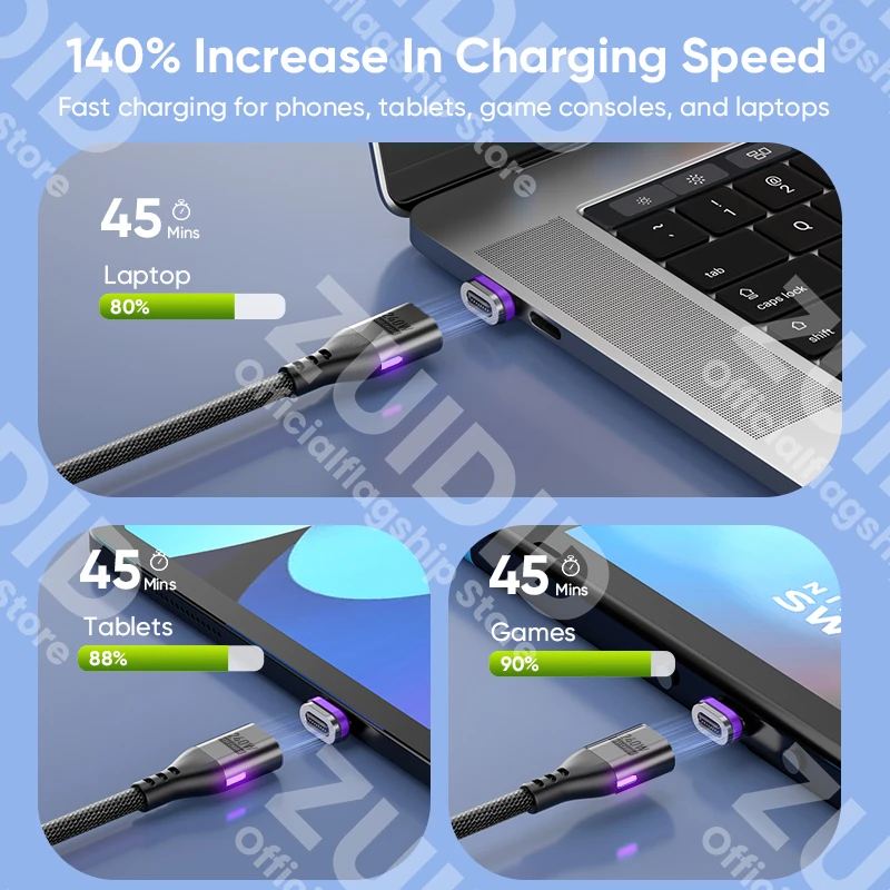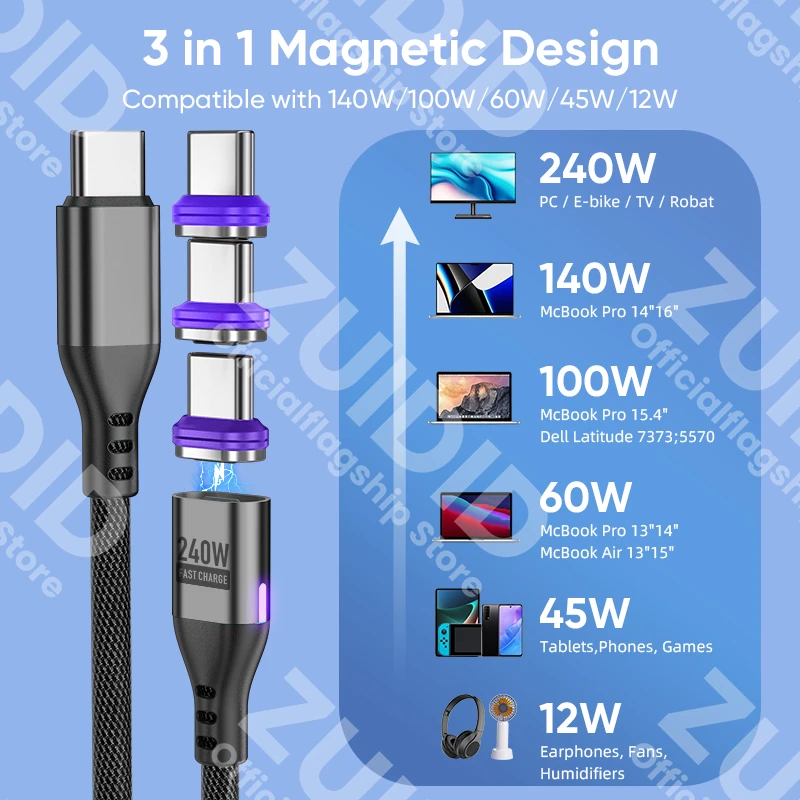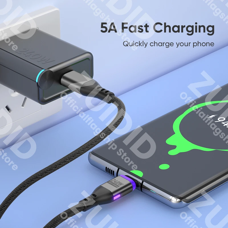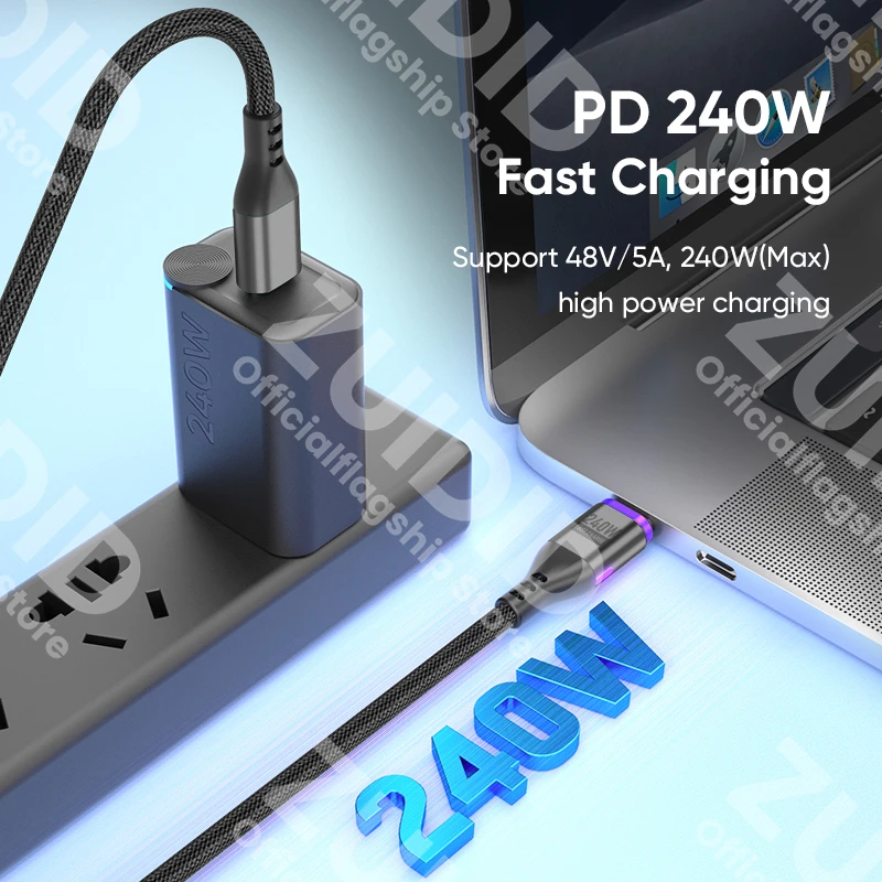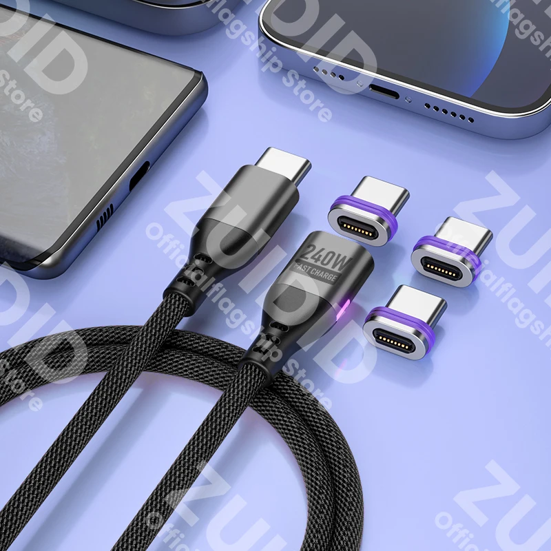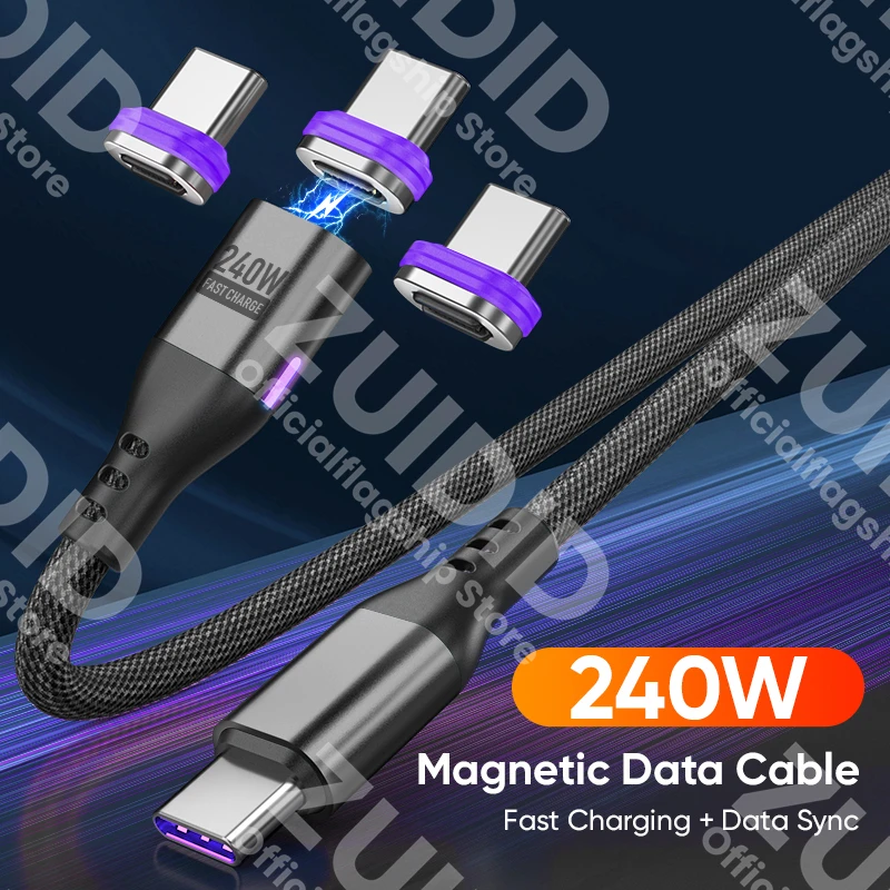 PD240W USB C a tipo C Cable de carga magnético 5A USB tipo C cargador rápido Cable de datos para iPhone 15 16 MacBook iPad Samsung Xiaomi