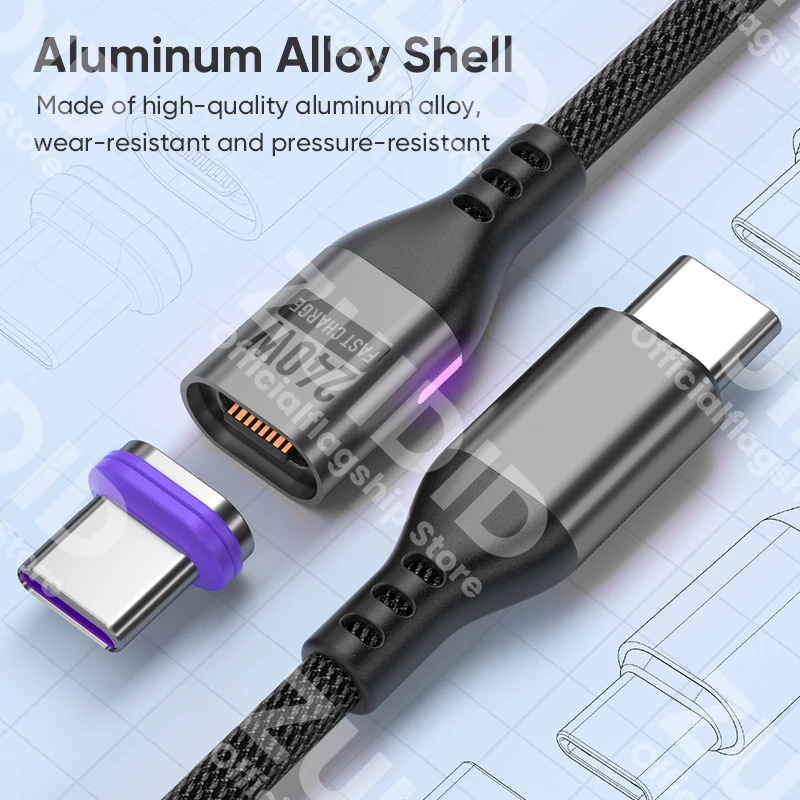 Comprar PD240W USB C a tipo C Cable de carga magnético 5A USB tipo C Cable de datos de cargador rápido para iPhone 15 16 MacBook iPad Samsung Xiaomi