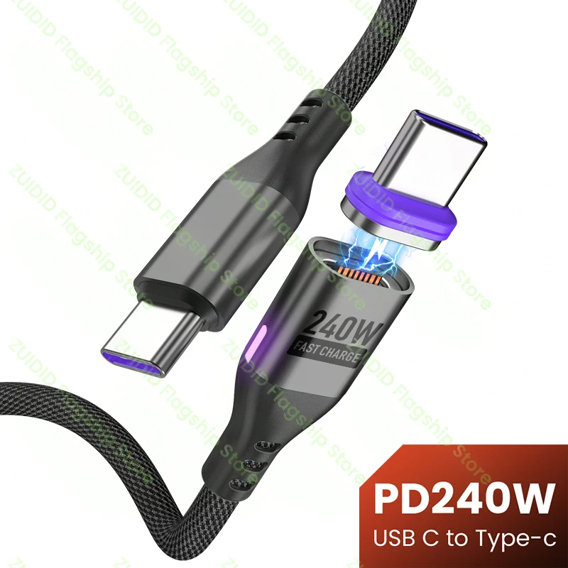 PD240W USB C a tipo C Cable de carga magnético 5A USB tipo C cargador rápido Cable de datos para iPhone 15 16 MacBook iPad Samsung Xiaomi