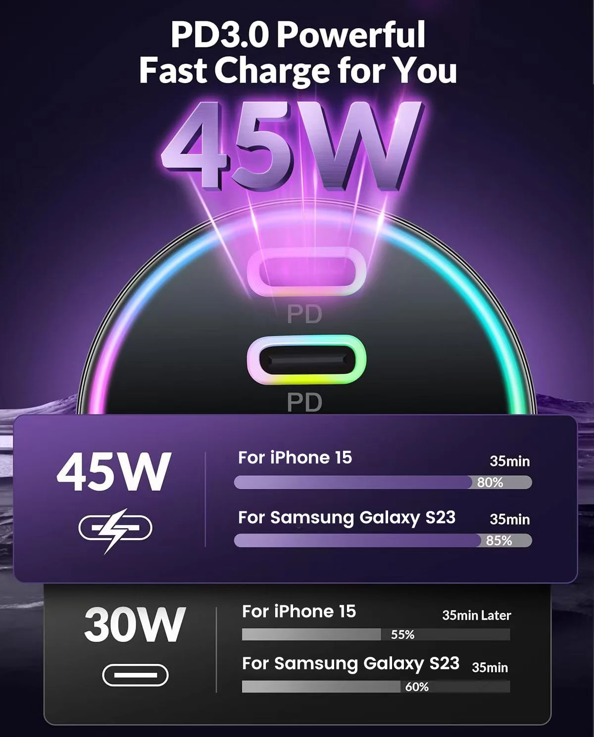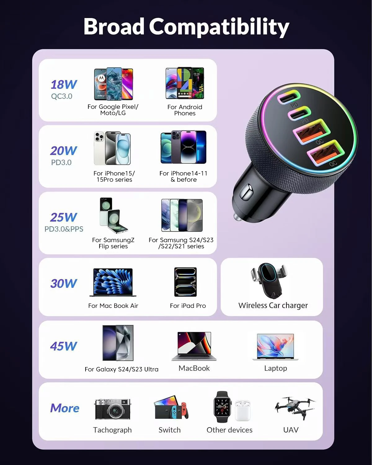 Potencia de salida: 2 * PD20W+2 * QC3.0