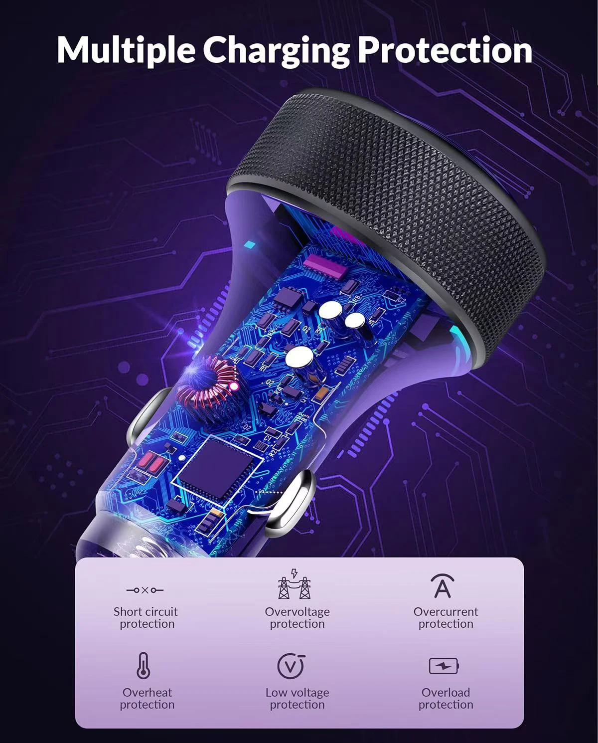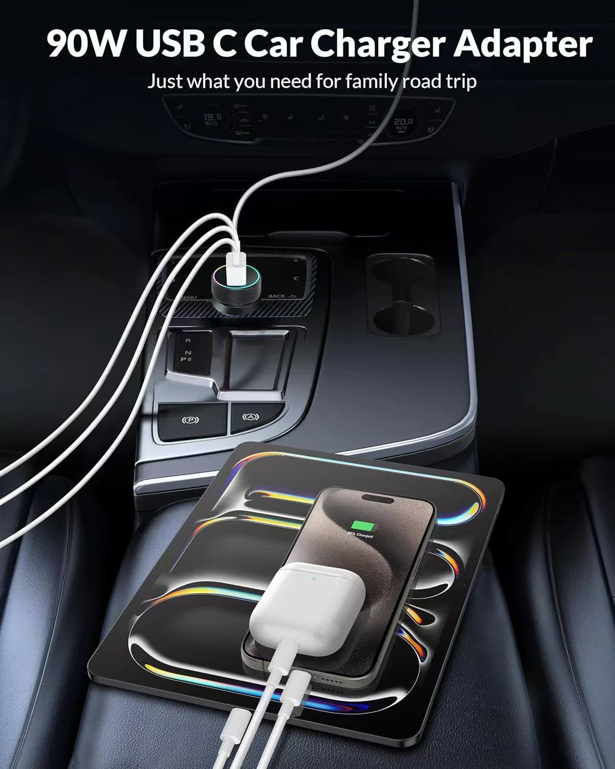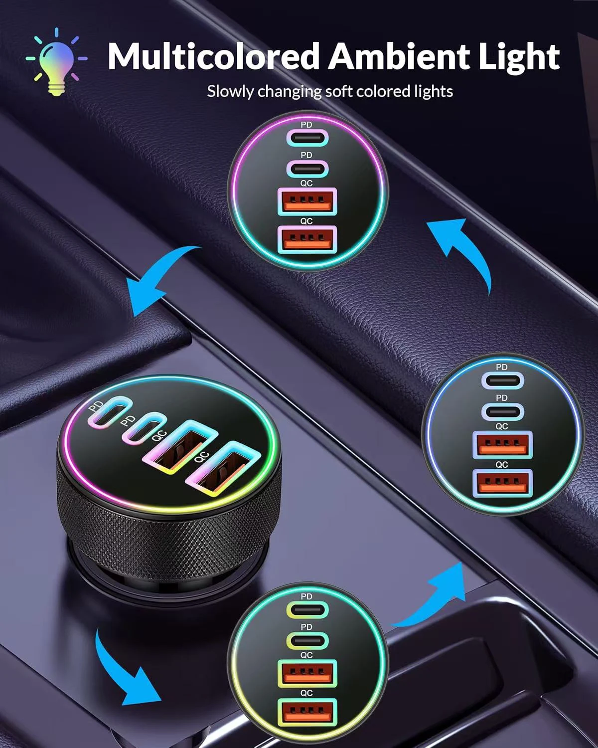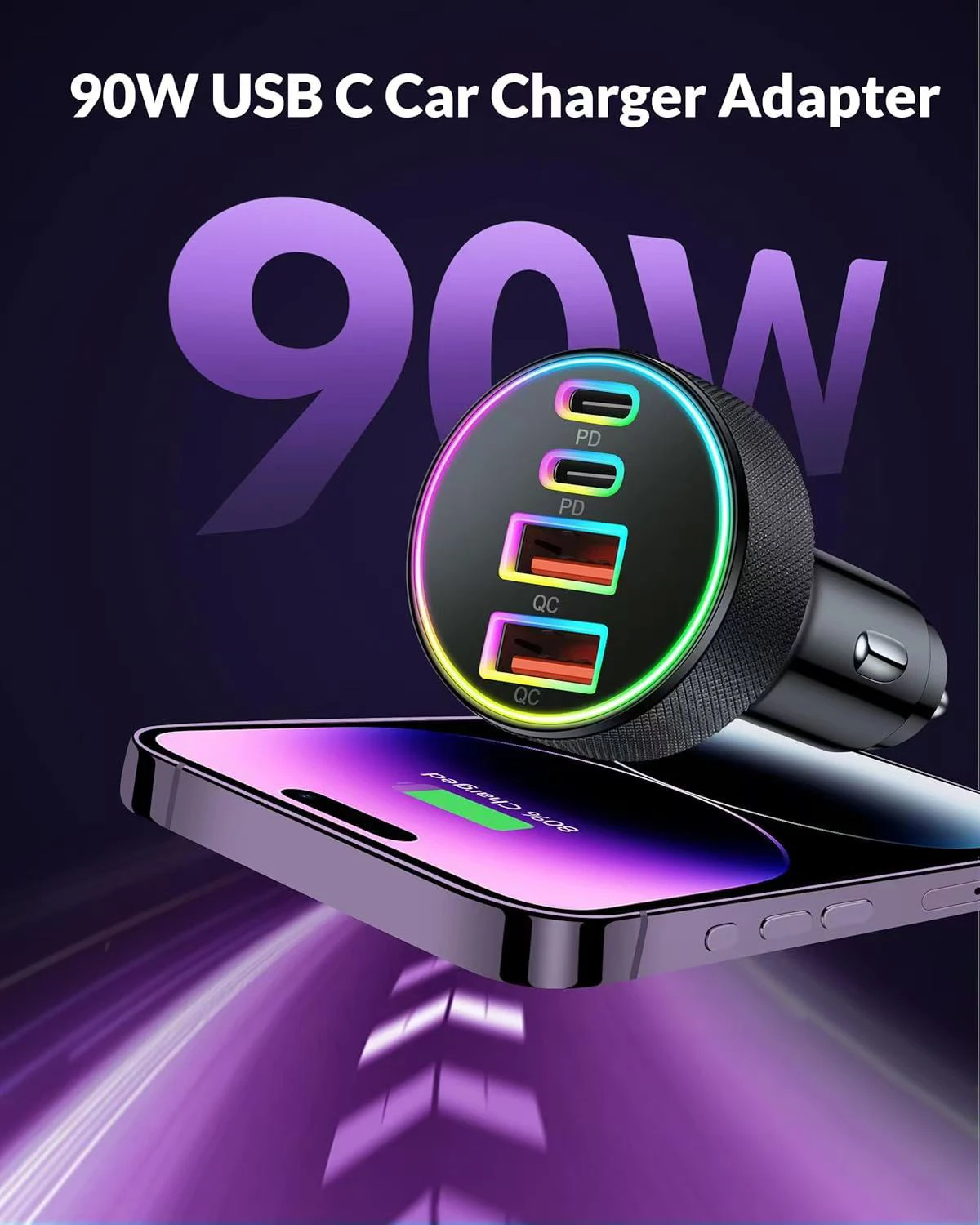 Nombre: Cargador de coche de carga rápida de cuatro puertos 90W 2C + 2A