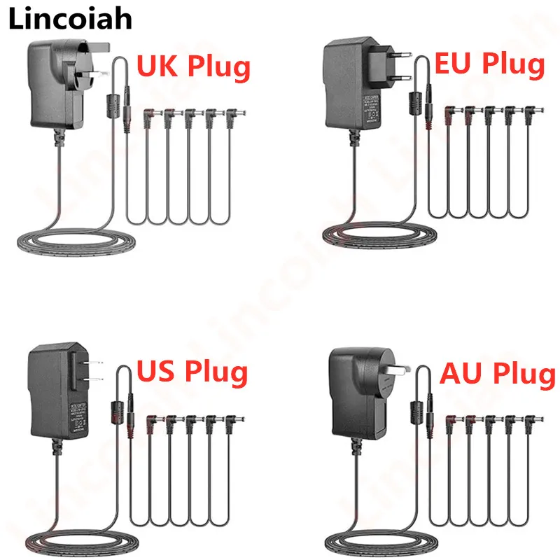 Lincoiah5 Way Electric Guitar Effect Pedal Power Supply Accessories Cables Adapter Daisy Chain Wire Pro 9V DC 1A US EU UK JP AU Plug Pod