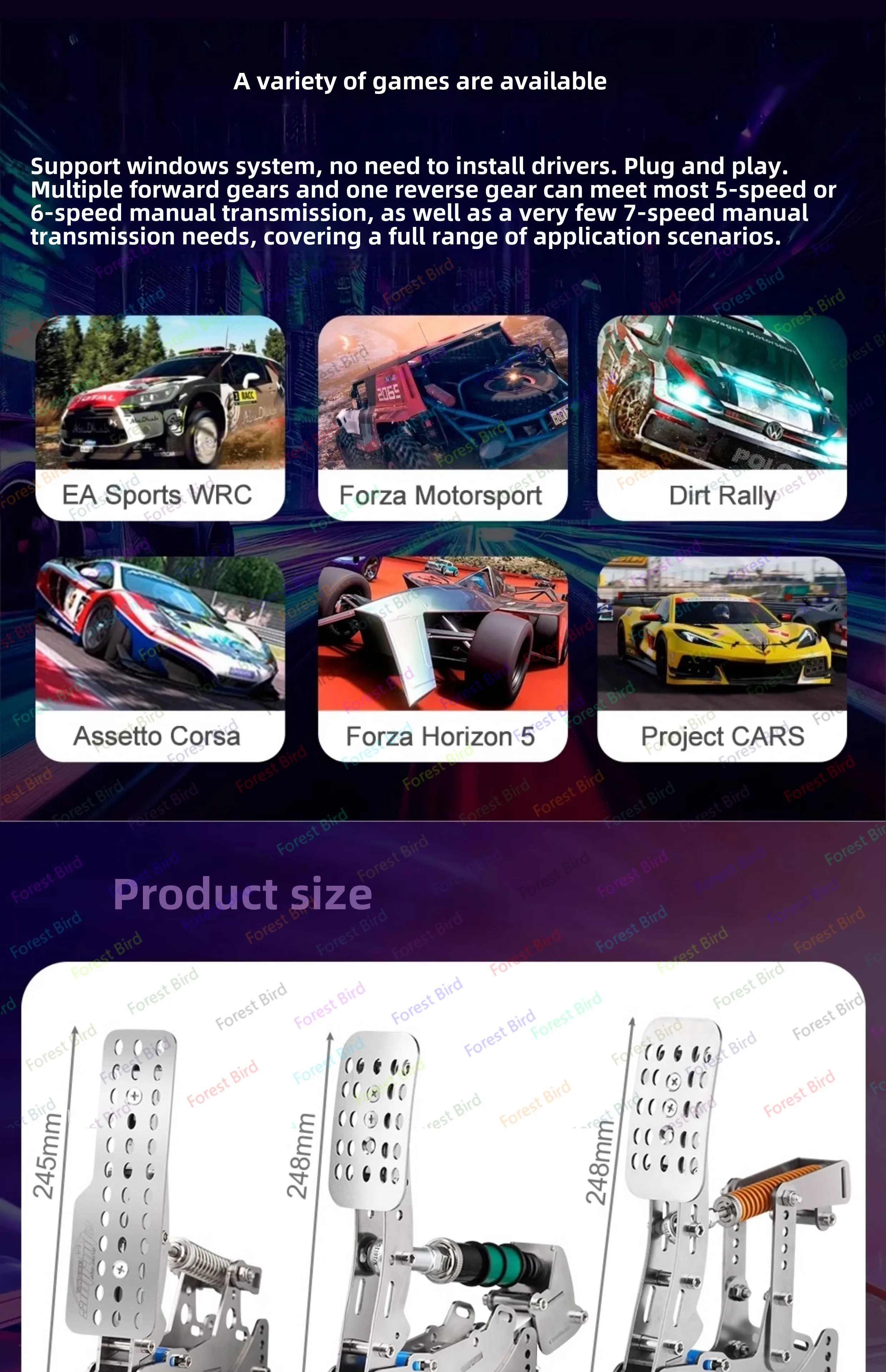 Pedal de juego de carreras simulado, sensor de presión de pesaje, volante de accionamiento directo, emulador doméstico para LogitechG27/G29/T300