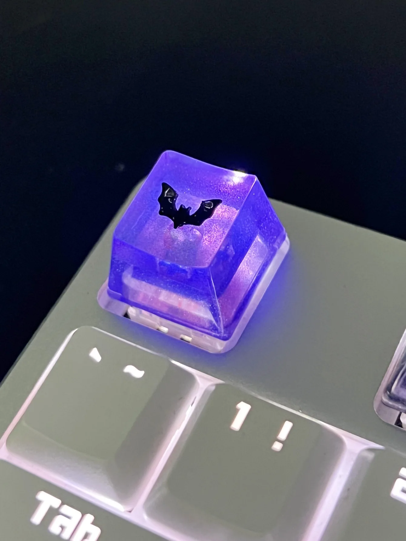 Cubierta de resina con pegamento transparente para Halloween, tecla de teclado mecánico con eje cruzado de murciélago y personalidad, 1 Uds.