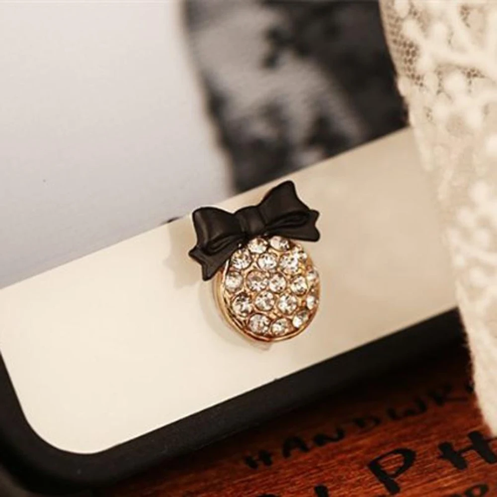 Pegatina Universal para Botón de Inicio, Protector de Llave de Identificación Táctil en Forma de Lazo de Diamantes de Imitación para Smartphone, Teléfono Móvil, Decoración DIY