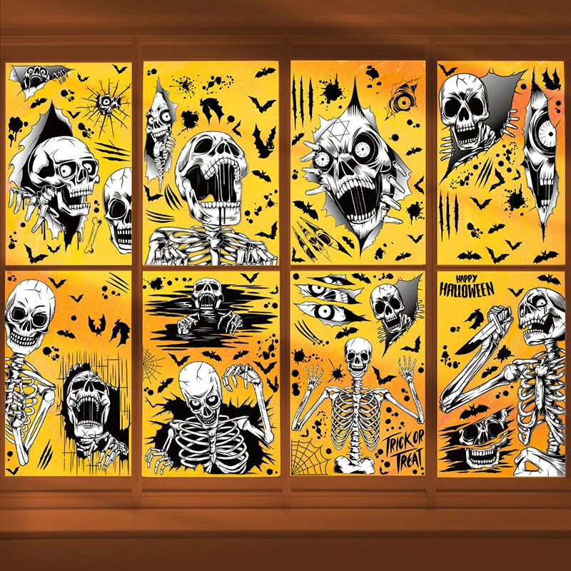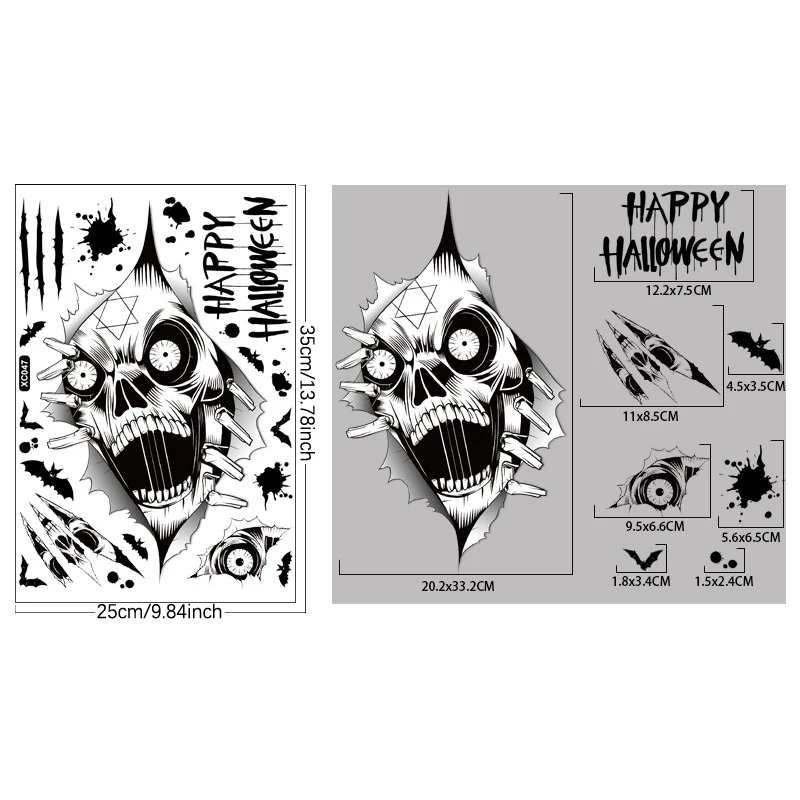 2. Cómodo y fácil de usar: las pegatinas de Halloween se pueden aplicar fácilmente a varias superficies lisas, como ventanas, paredes, puertas, etc.
