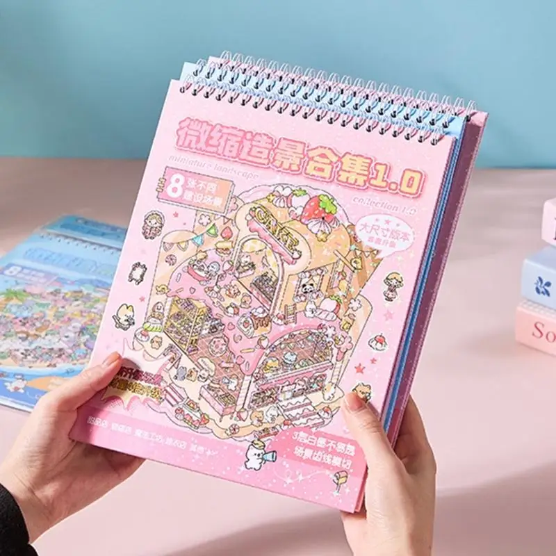 Perfect for parent seeks educational rewarding sticker, and teachers organizing classroom craft activities, this portable twin wire binding miniature scenes sticker book collection engages preschoolers and children through in imaginative play.