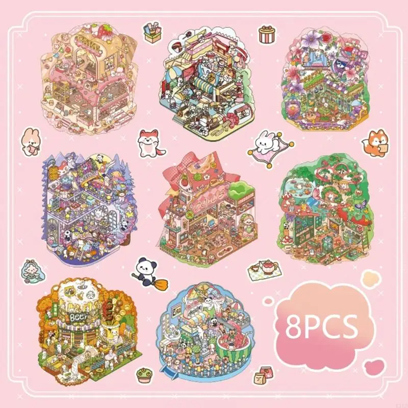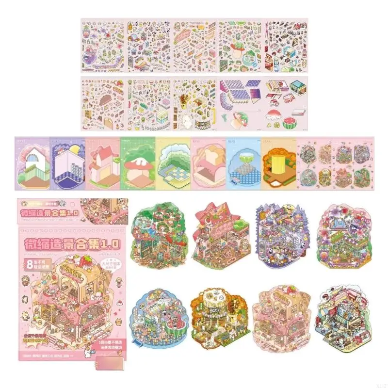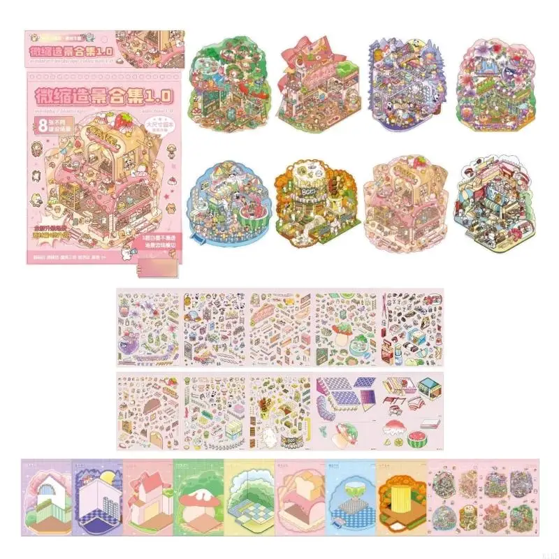 Features:OOTDTYCrafted with waterproof PET, this miniature scenery sticker book features various fairytale town scenes that inspire endlessly storytelling and creative crafting project for kids aged 3+.