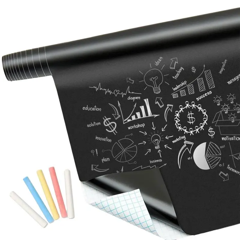 Este papel de contacto le permite escribir y dibujar con las 5 piezas de tiza incluidas. Su fuerte adhesivo se adhiere bien a la mayoría de las superficies lisas, planas y limpias, por lo que puede usarlo en casi cualquier lugar.