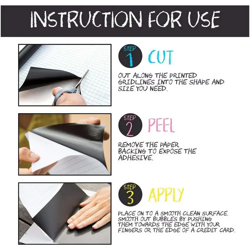 5. Facilidad de uso: ajuste fácilmente nuestra pegatina de tablero negro grande a cualquier tamaño de pared utilizando la rejilla impresa en el papel de respaldo para un corte recto preciso y sin esfuerzo.