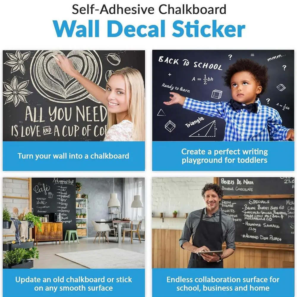 1. Seguro de usar: escribe y dibuja en cualquier superficie lisa con nuestra pegatina de tablero negro grande que viene con 5 piezas de tiza. Seguro para todas las edades y fácil de quitar sin dejar marcas, es la salida perfecta para dar rienda suelta a su imaginación.