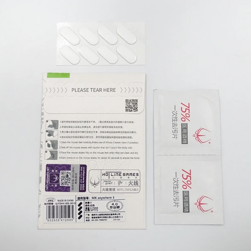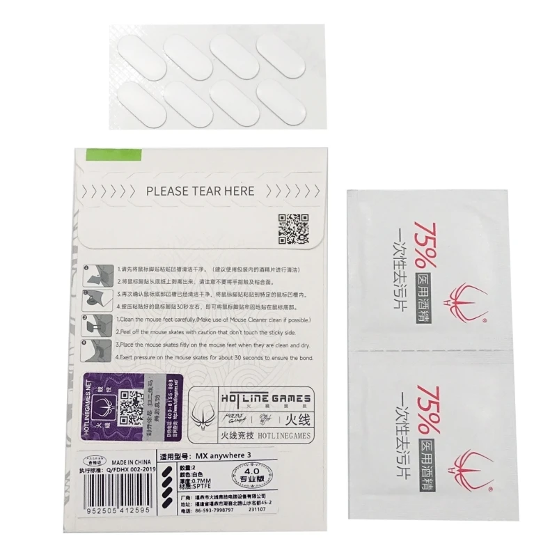 Nota:Este producto es un pie de ratón de repuesto. Después de quitar la pegatina del pie del ratón, limpie la parte inferior de la cáscara con el algodón que se adjunta en el paquete y luego pegue los nuevos pies del ratón.