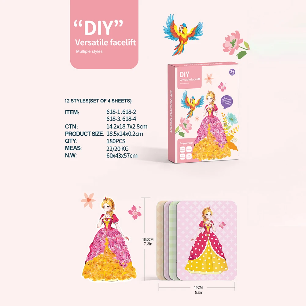 Comprar Pegatina de pintura DIY para niños, juguetes artesanales, arte para niños, vestido de princesa, arte de Poke hecho a mano, regalos educativos para niños