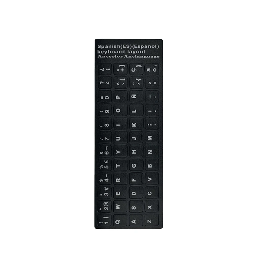 Comprar Pegatina para teclado inglés, español, italiano y coreano, alfabeto duradero, fondo negro para PC, accesorio para ordenador portátil, teclado de ordenador