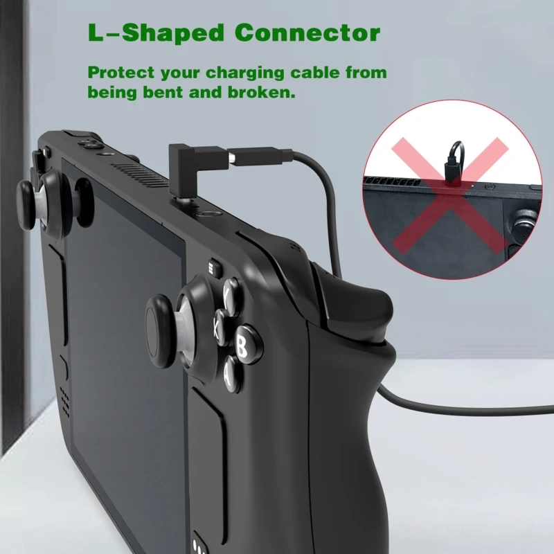 El conector en forma de L protege tu cable de carga de doblarse y romperse.