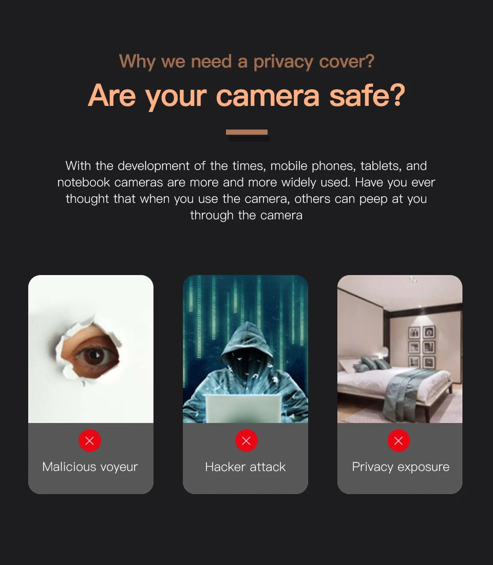 Cubre su cámara web cuando no está en uso y evita que los hackers espíen Web lo. Es perfecto para proporcionar privacidad, seguridad y tranquilidad a individuos, grupos, organizaciones, empresas y gobiernos.
