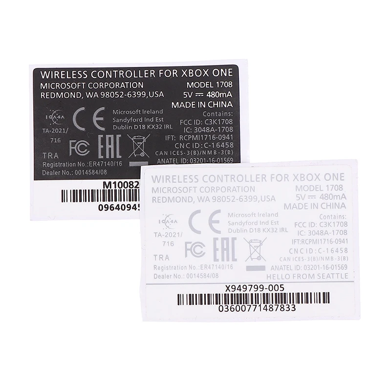 2 piezas para Xbox One controlador inalámbrico negro pegatina trasera etiqueta sellos controlador etiqueta adhesiva