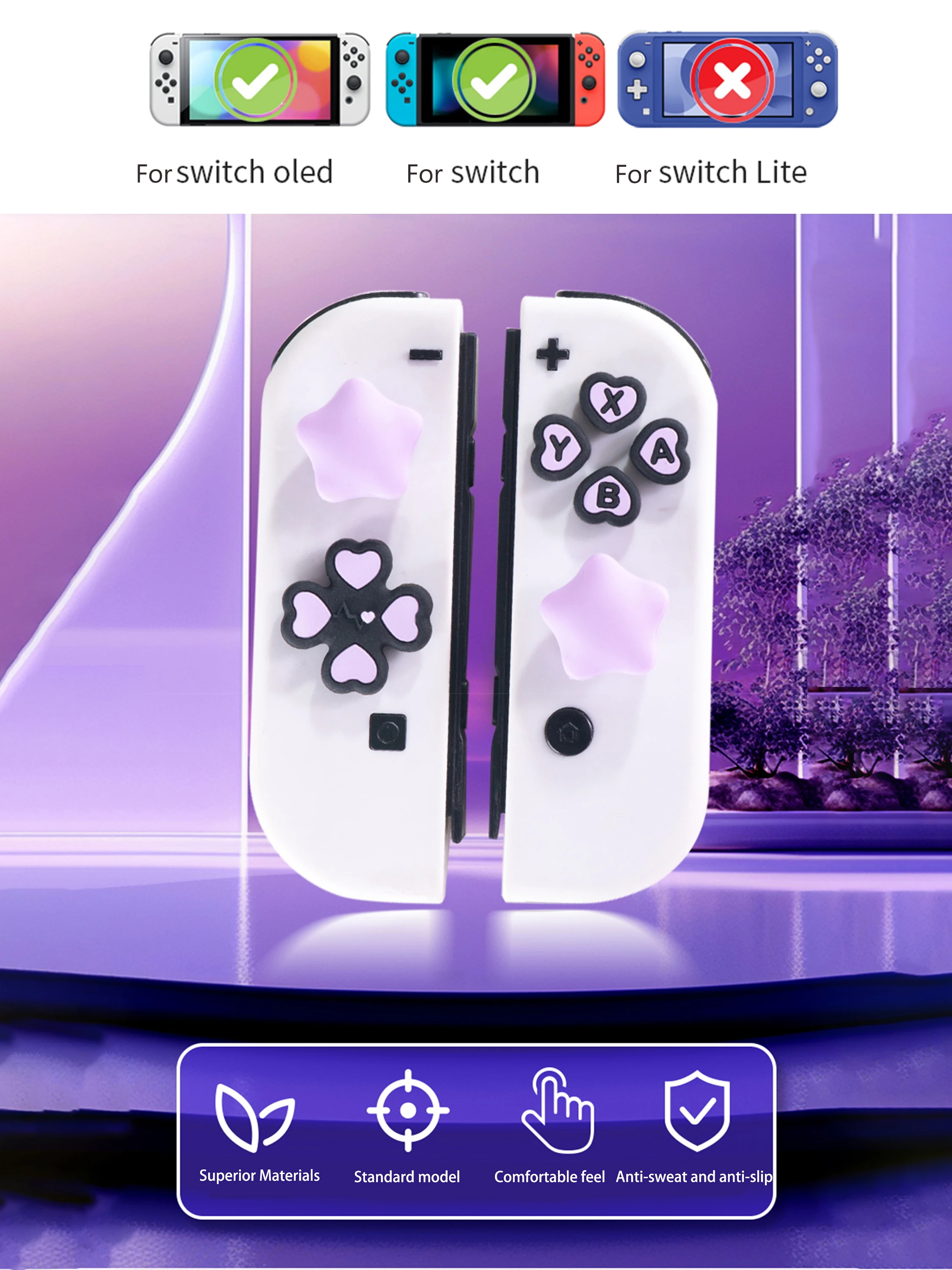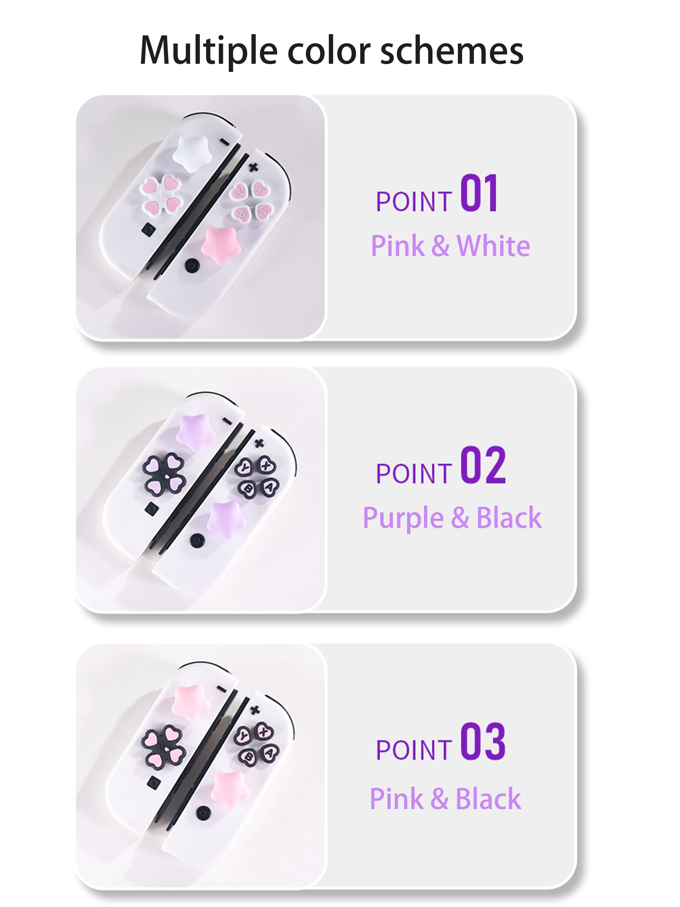 Pegatinas de botón multicolores + juego de tapa basculante para interruptor/interruptor OLED Gamepad Material suave, antideslizante y ecológico AKSW-308