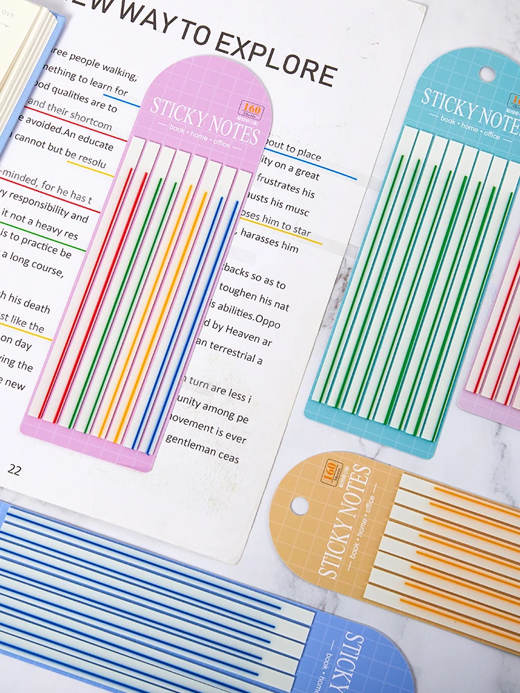 Comprar Pegatinas de línea Horizontal de Color macarrón, pestañas fluorescentes transparentes, notas adhesivas de bandera, papelería, regalos para niños, escuela, 160 hojas