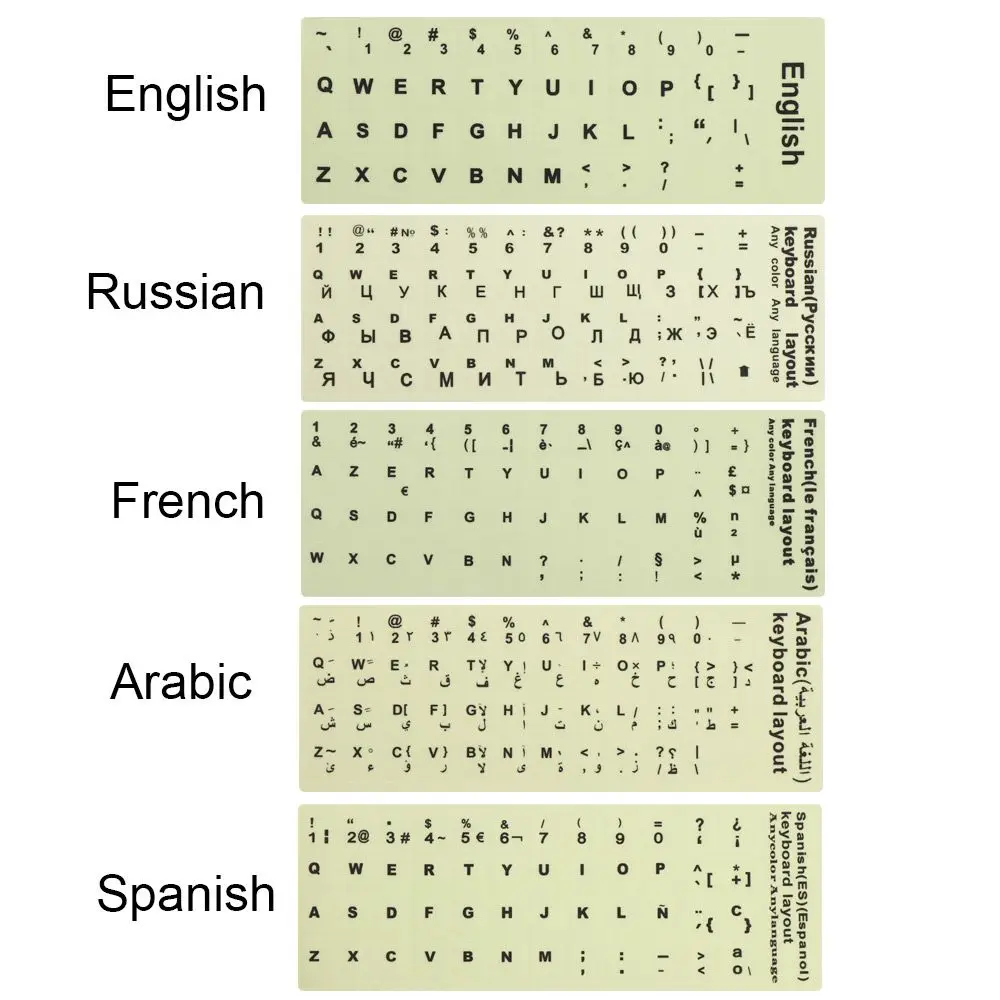Luminous Keyboard Stickers Spanish/English/Russian/Arabic/French Language Letter Protective Film Alphabet Button Layout For Laptop PC