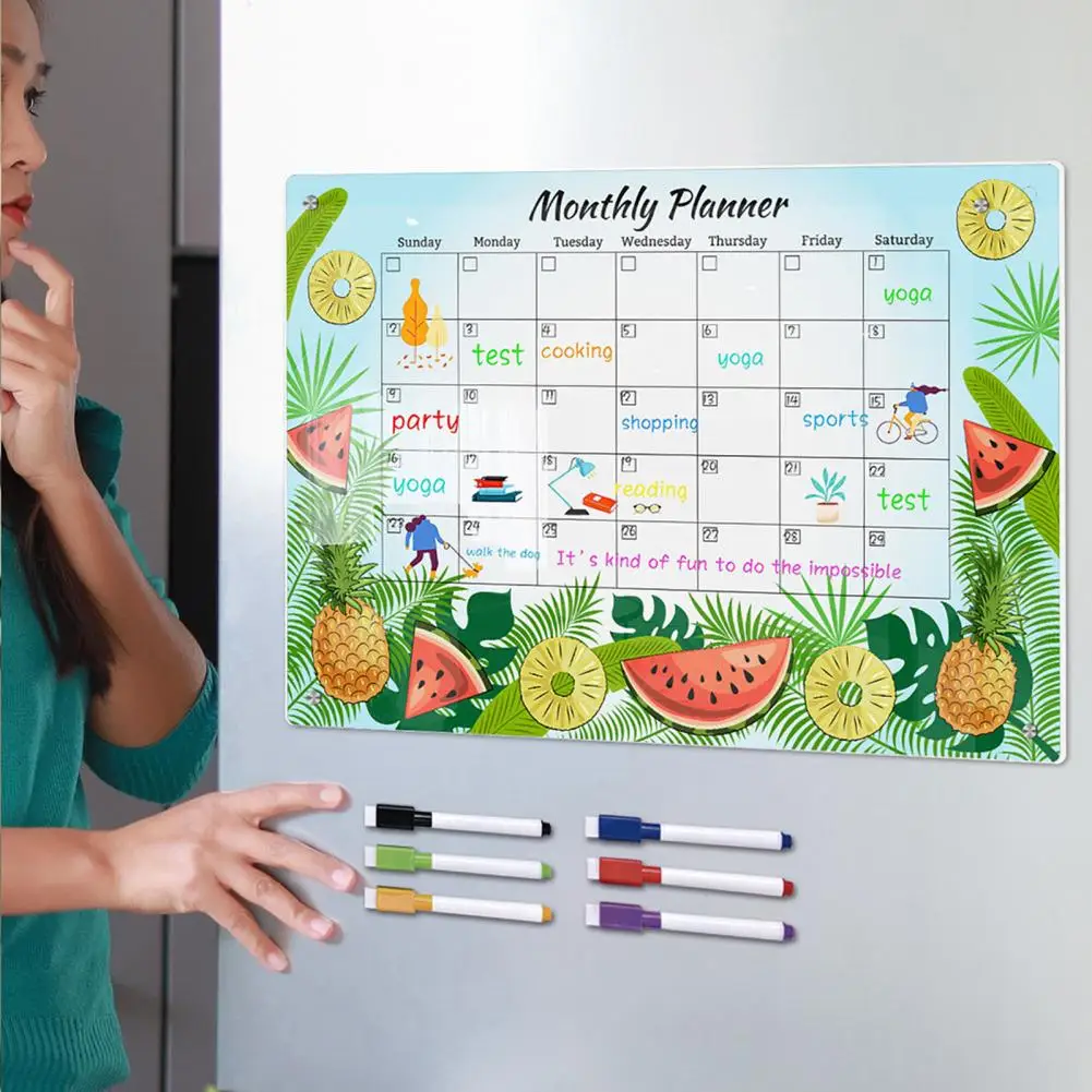 Recordatorio de fechas, pegatinas magnéticas organizativas, planificador semanal de acrílico transparente, tablero de mensajes para una planificación de escritura suave