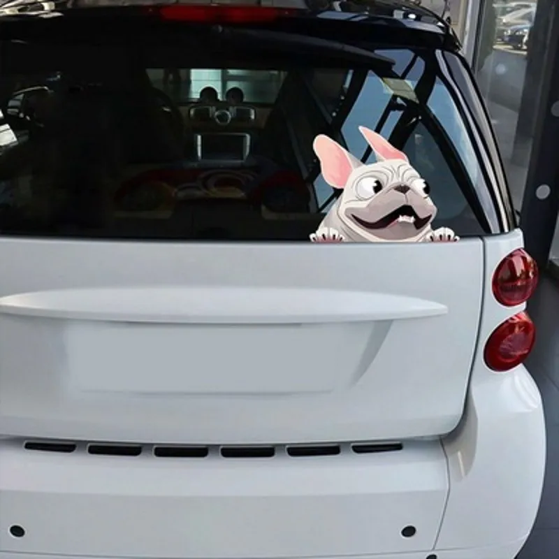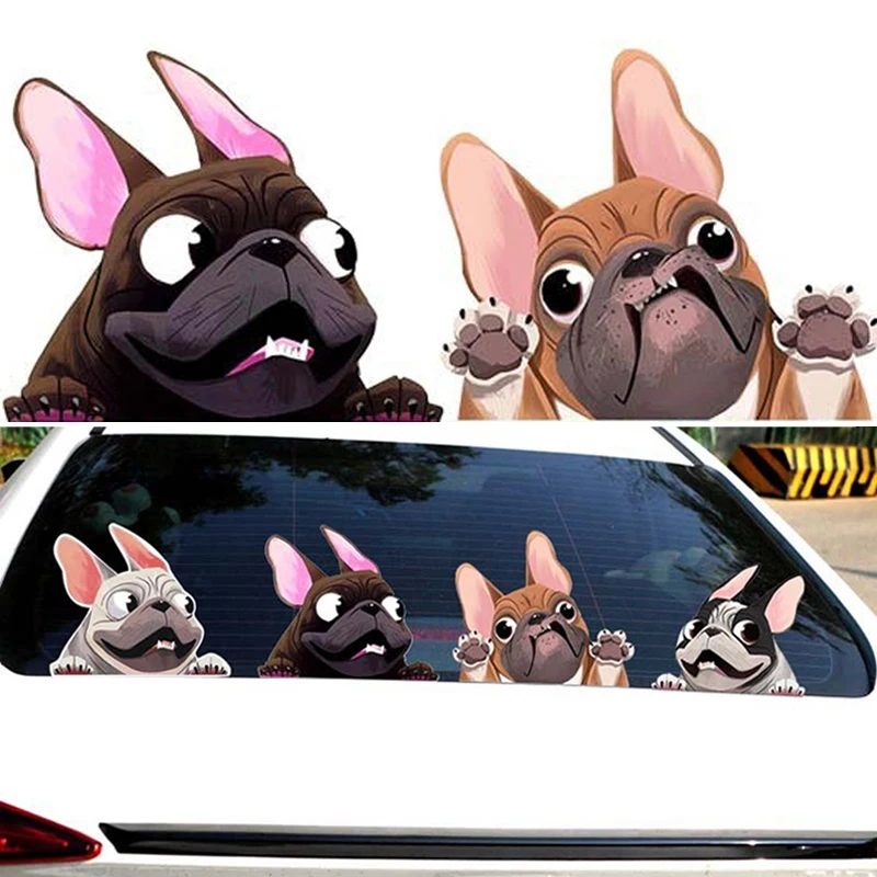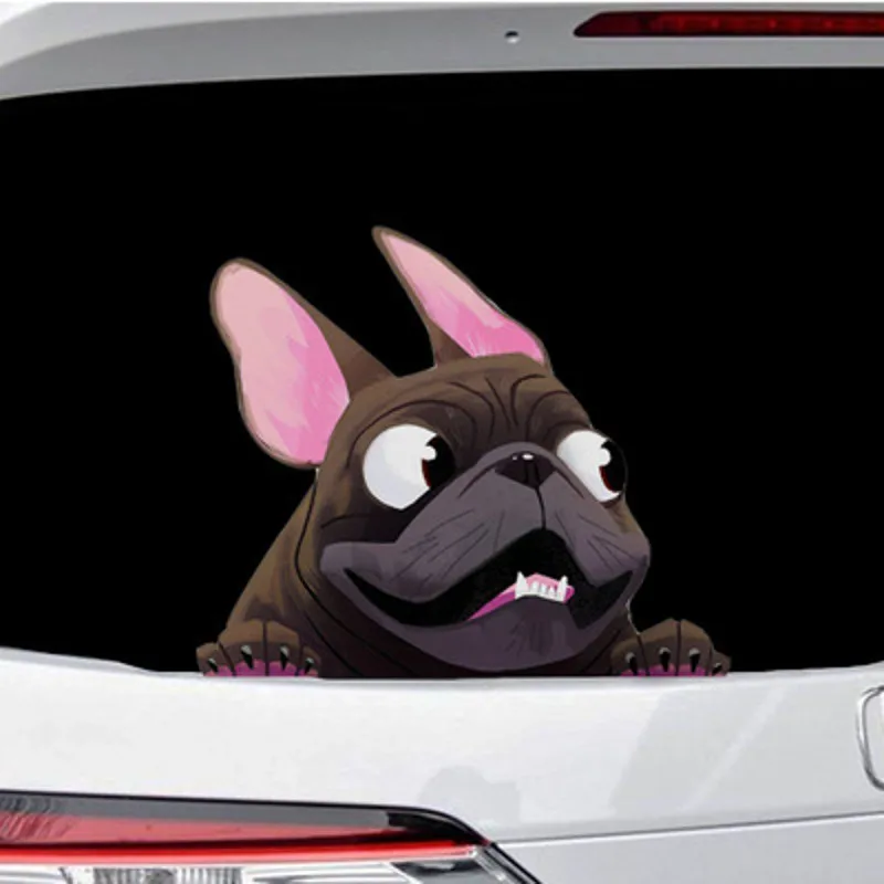 Pegatinas de perro de dibujos animados para coche, calcomanía de vinilo impermeable para ventanas laterales de Bulldog Francés, decoración de estilo automático creativo, 12x14cm