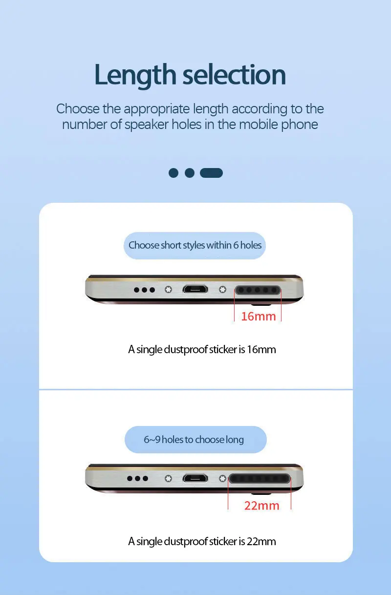 4.No afecta la calidad del sonido: la pegatina de red a prueba de polvo para teléfono móvil es muy ligera y delgada, y no afecta la llamada y el volumen.