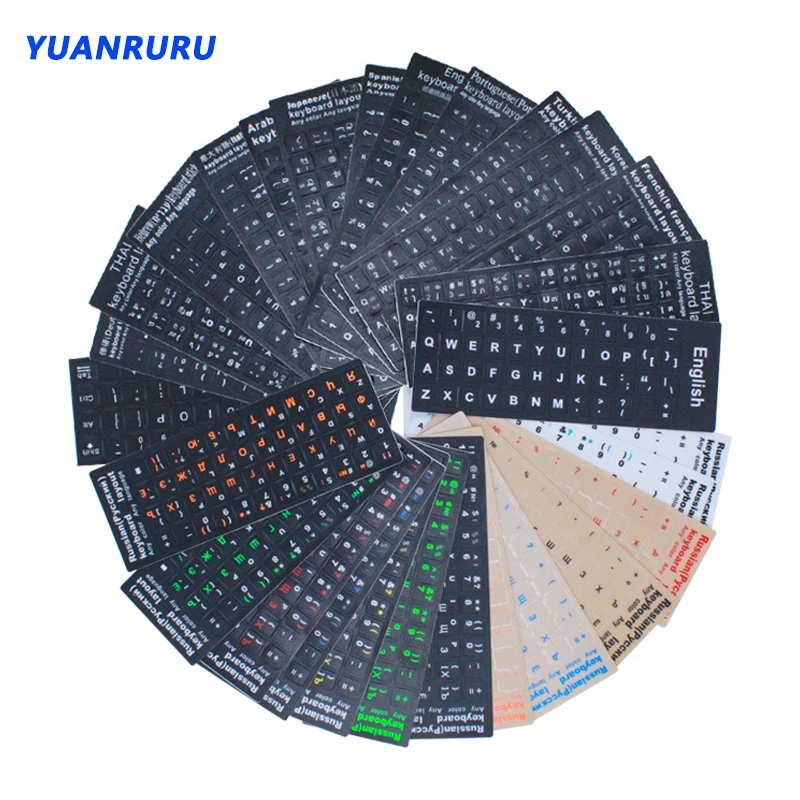 Comprar Pegatinas de teclado de letras rusas e inglesas para ordenador portátil, cubiertas de teclado de escritorio, pegatinas de letras