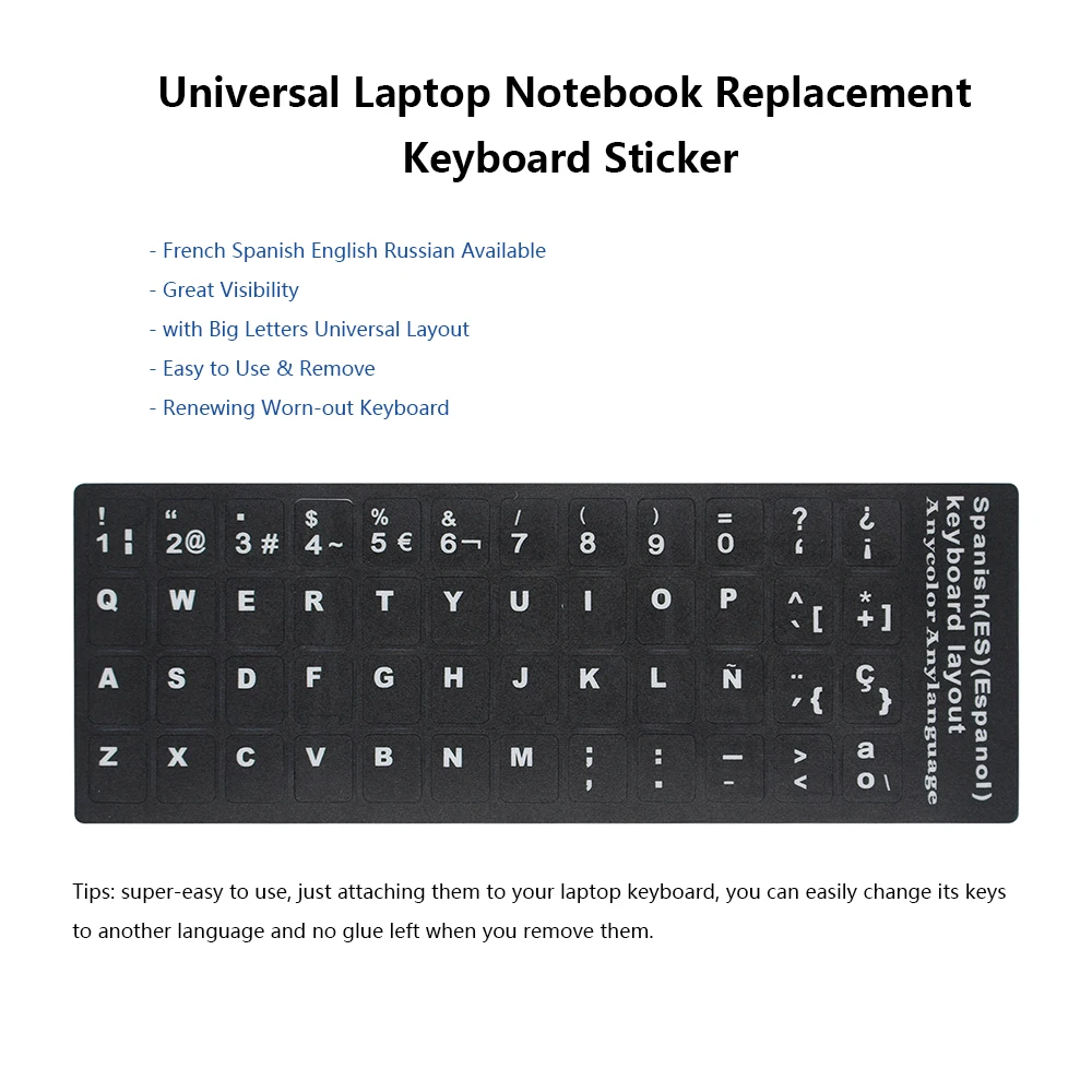 Fácil de usar y quitar: Súper fácil de usar, simplemente adjuntarlos al teclado de su computadora portátil, puede cambiar fácilmente sus teclas a otro idioma y no queda pegamento cuando las quita.