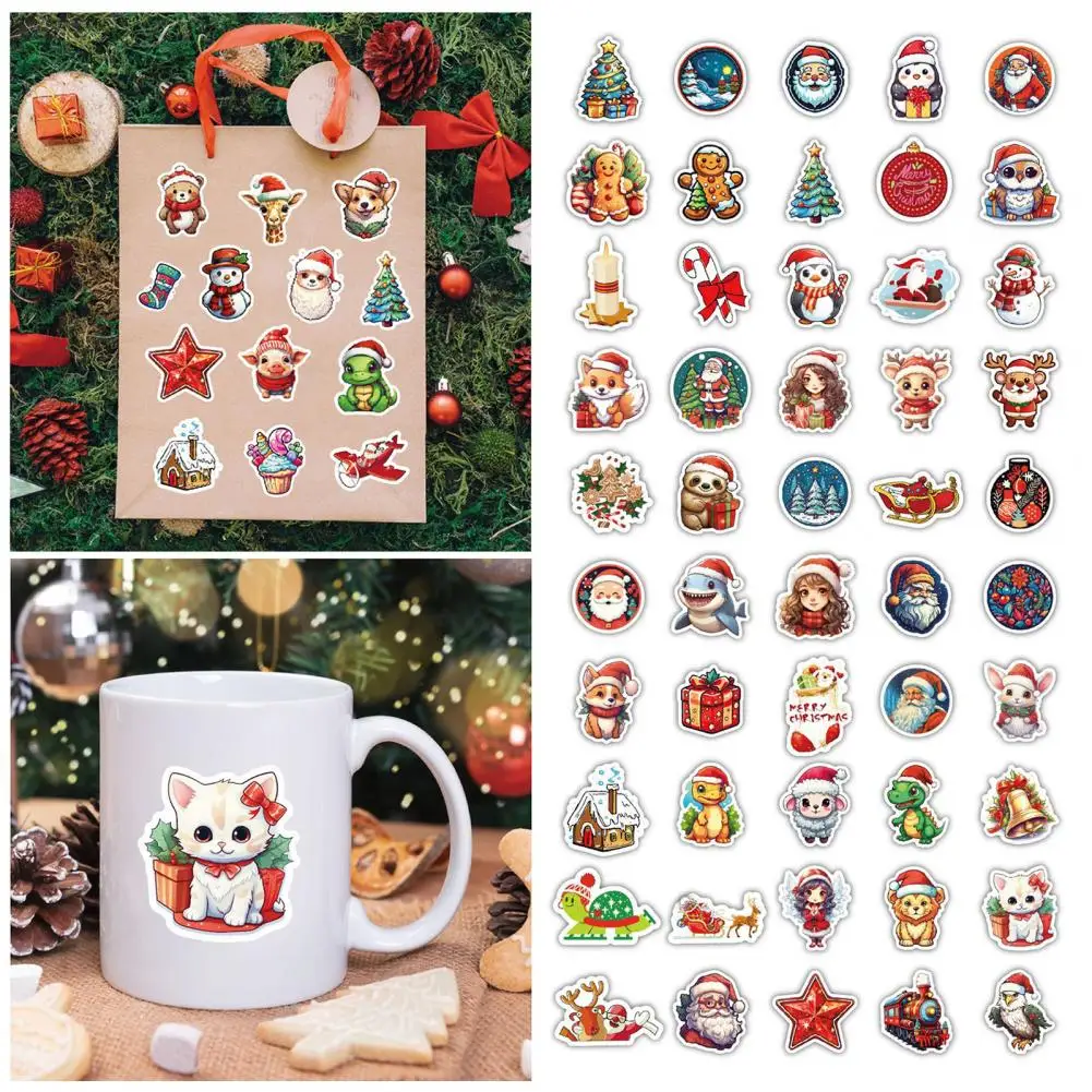Pegatinas temáticas de Navidad de dibujos animados, juego de pegatinas de Navidad impermeables, calcomanías de Pvc extraíbles de 100, para teléfono, portátil, álbum de recortes, niños