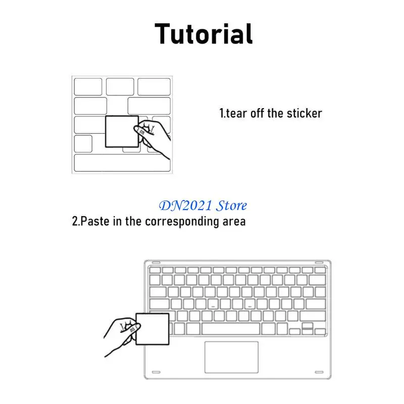 Instrucciones de uso: Antes de usar, limpie la superficie de la tecla, sin polvo y manténgala seca, luego instale las pegatinas manualmente en orden.Disfruta de la diversión del bricolaje.