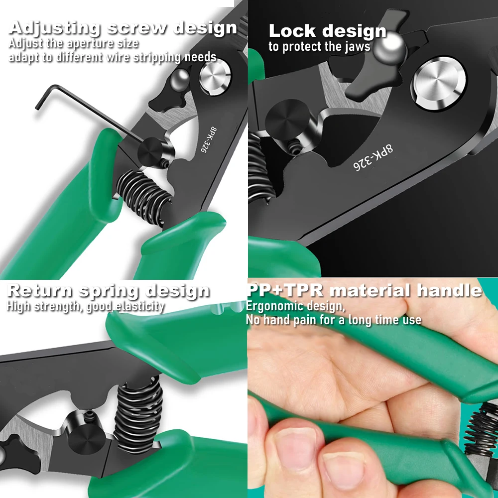Ajuste el diseño del tornillo, ajuste el tamaño de la apertura, se adapta a las diferentes necesidades de pelado de cables