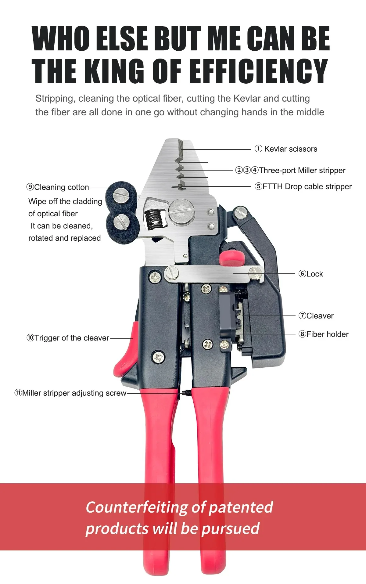 Pelacables de fibra óptica multifuncional Signal Fire, pelador de cables de caída FTTH, cuchilla de fibra óptica de un solo paso de alta calidad