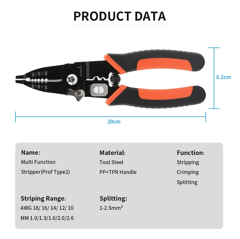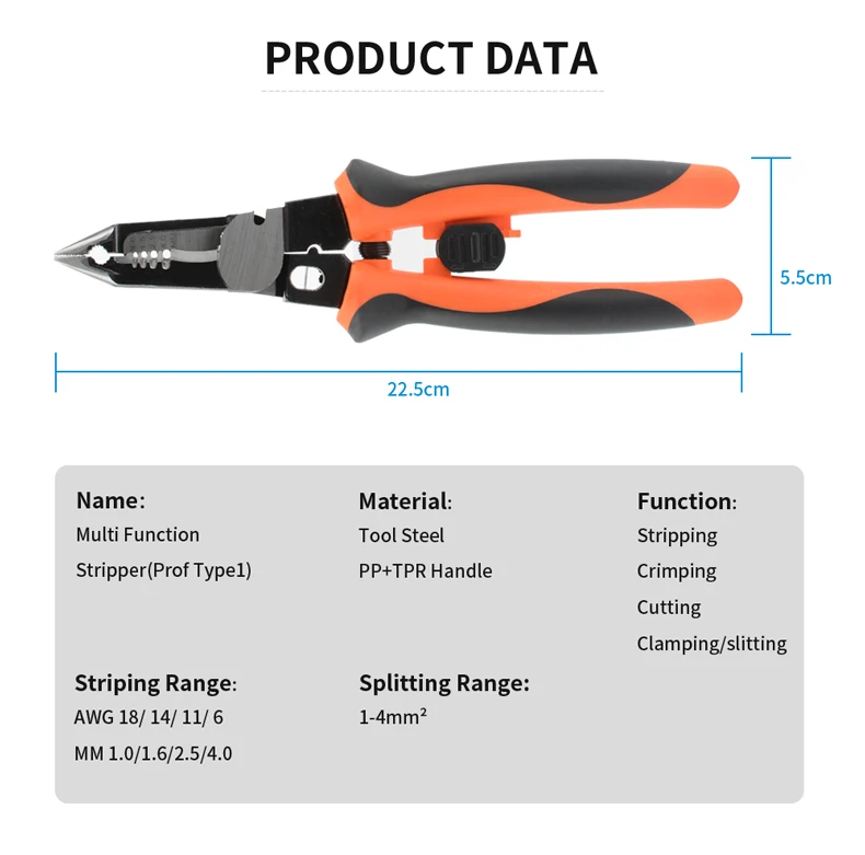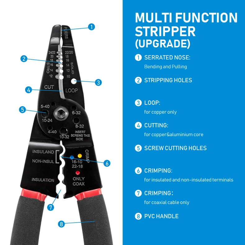 Pelacables multifunción, alicates de punta larga, tijeras de Cable lateral, herramientas manuales para electricista