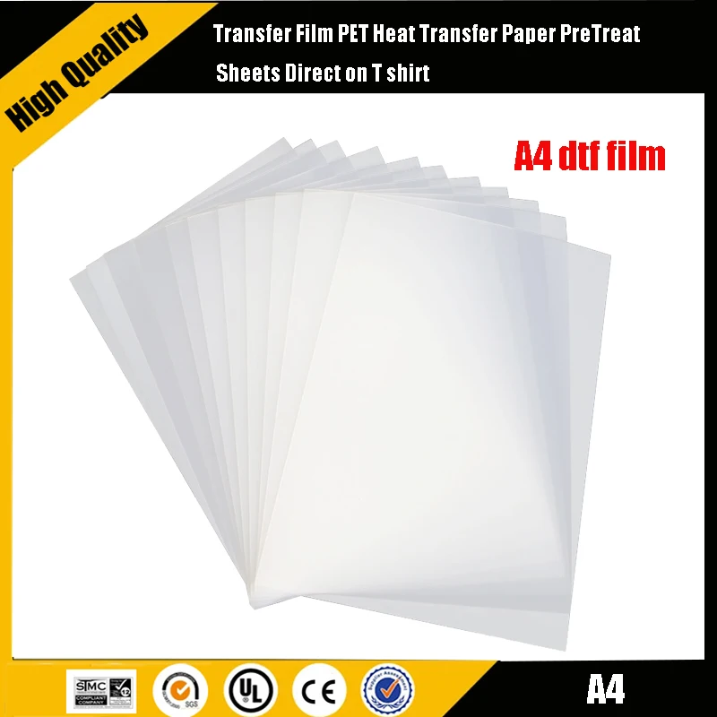 Película A4 DTF, película de impresión de inyección de tinta Digital, película de transferencia de espesor 75U, papel de transferencia de calor para mascotas, hojas de pretratamiento directo en la camiseta